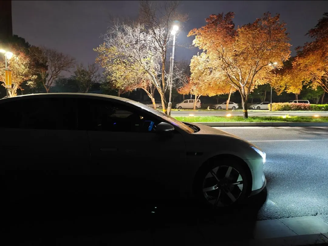 第一站去了应天门,穿古装在宫墙下拍了照,把车停在城楼旁,现代电车和古风场景同框,效果还不错。