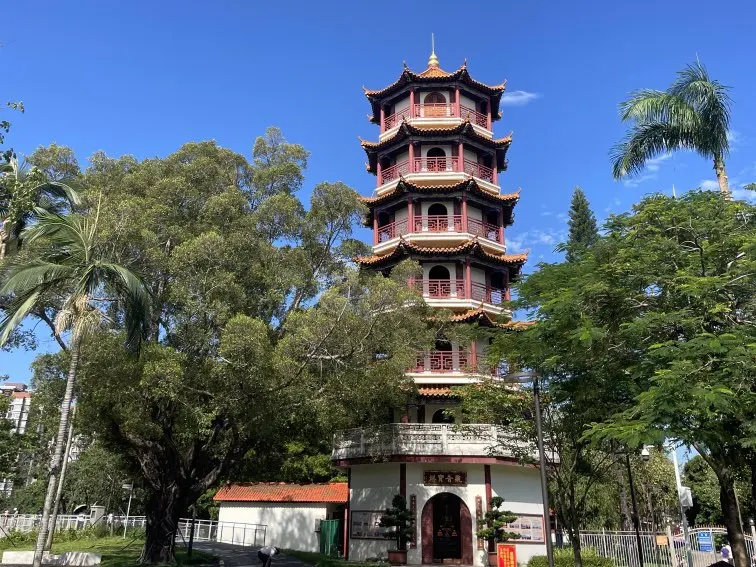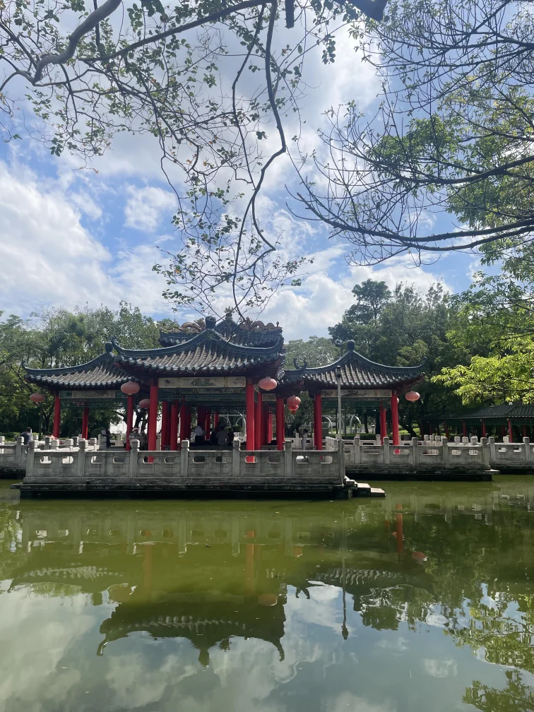 龙园的大草坪果然是露营绝佳地,平坦开阔又遮阴,远处的龙兴寺宝塔静静矗立,飞檐翘角在蓝天映衬下勾勒出雅致轮廓。我们铺开野餐垫,摆上提前备好的水果与点心,雪球乖巧地趴在脚边,偶尔叼来掉落的果核,模样憨态可掬。伙伴们围坐闲聊,有人拿出便携音箱放起轻快的音乐,有人靠着M03的车身拍照,这台AI量化美学设计的轿跑,流畅的溜背线条与周围的自然景致意外相融,低风阻的车身在微风里仿佛都透着灵动。
