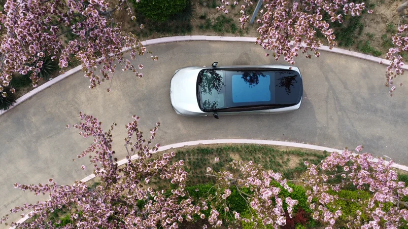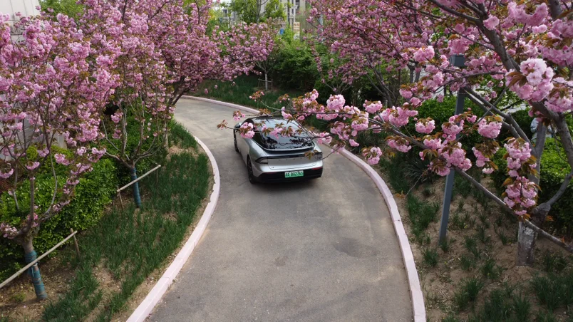 坐回小鹏P7+里,宽敞舒适的座舱让人格外放松😌,超大车窗将整片粉色花海框成一幅流动的画卷🚗。一家人坐在车里,聊着天,吹着风,欣赏着窗外无边的春色,平淡的日子也因此变得格外美好。