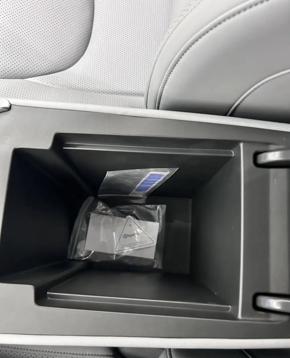 纵深很足,驾驶证、行驶证、口罩、充电线、补妆小物件全都能收纳进去,关上就是整洁内饰,隐私性拉满