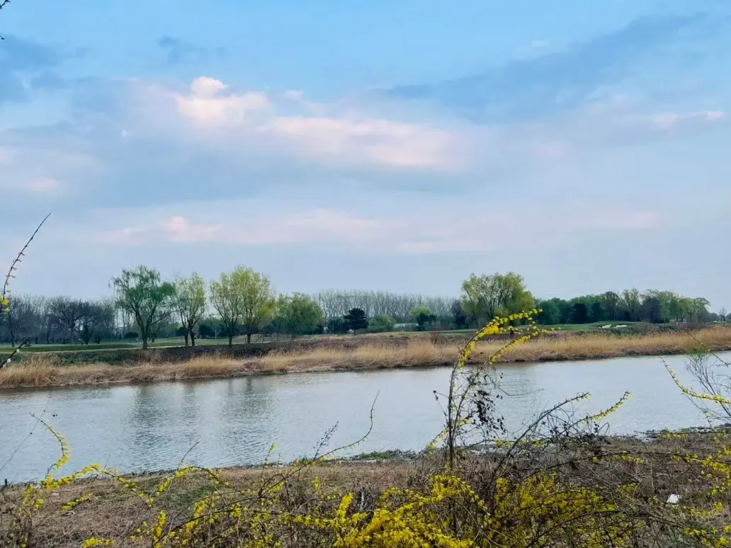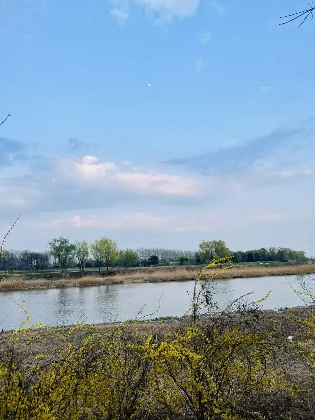 这次找到的北京免费露营地在温榆河畔,三月底四月初河边有迎春花🌸,河滩还有一些零散的桃花~配上好天气蓝蓝的天空很美~