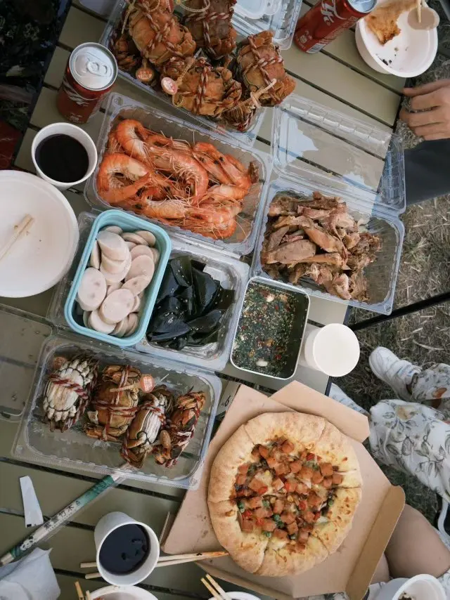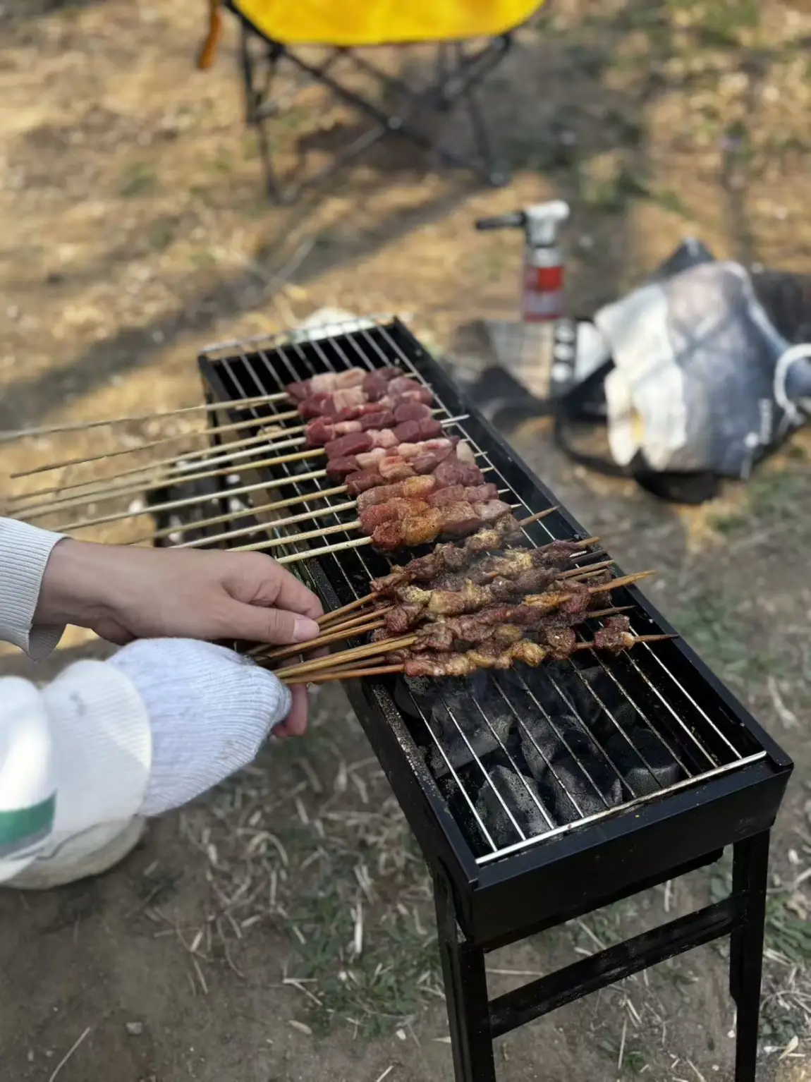 自带烤炉超方便!滋滋冒油的羊肉串🍢,还有现煎的五花肉卷生菜,配上冰镇可乐🥤,这快乐谁懂啊!