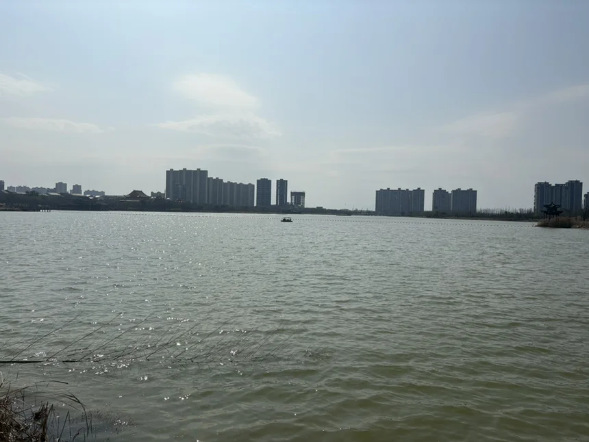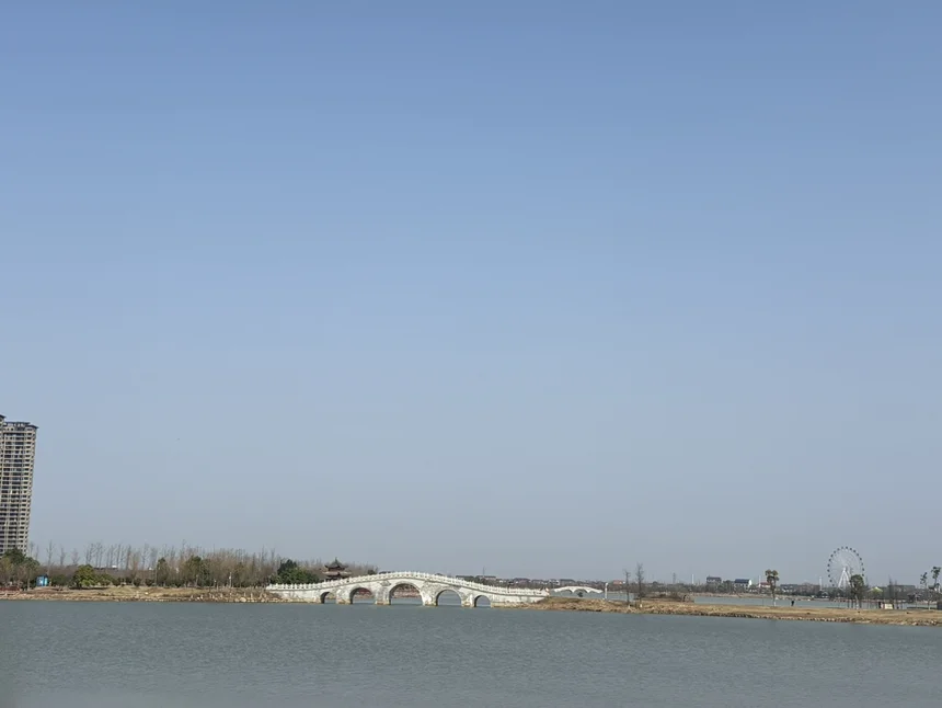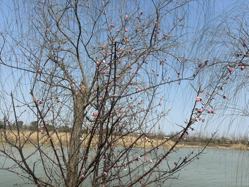 沿着湖边步道慢慢走,看柳枝抽芽,梅花在枝头绽放,远处的石拱桥、摩天轮,还有刻着“楚”字的塔楼,一步一景都是春日的浪漫。没有城市的喧嚣,没有工作的催促,只有眼前的好风景,和身边最亲的人。