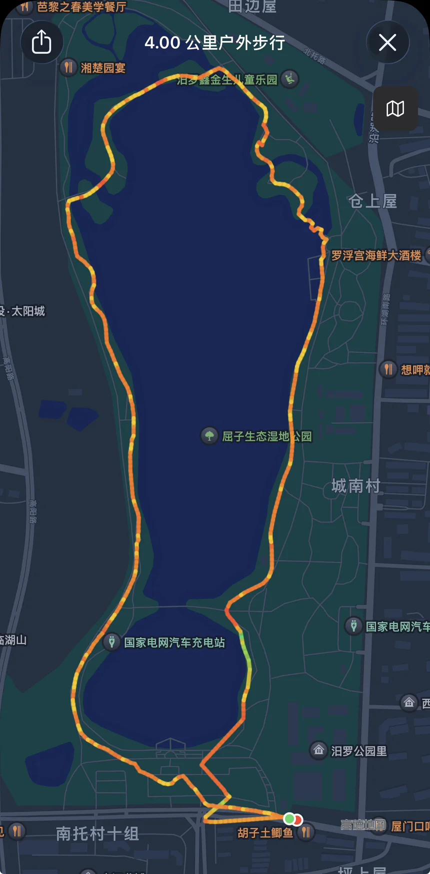 • 核心分区:湿地生态区、亲子游乐区、屈子文化展示区、环湖步道区四大板块,逛完一大圈大概3-4小时,我们这次环湖刚好4公里,70分钟轻松不费腿