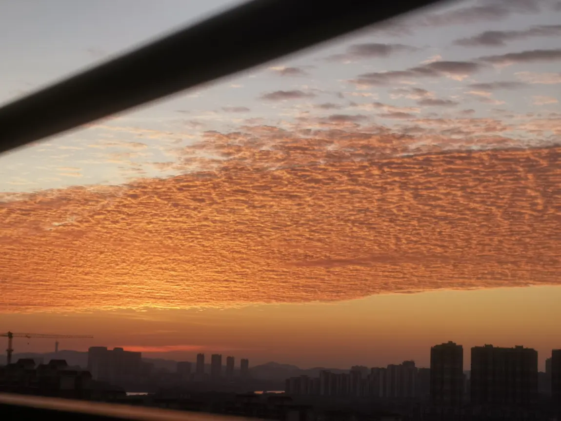 🌄 有时是傍晚时分,漫天霞光把云海染成滚动的橙红锦缎,云层像鱼鳞一样铺满天际,而城市在山脚下静静发光。那一刻,觉得整片天空都是我的私人影院。
