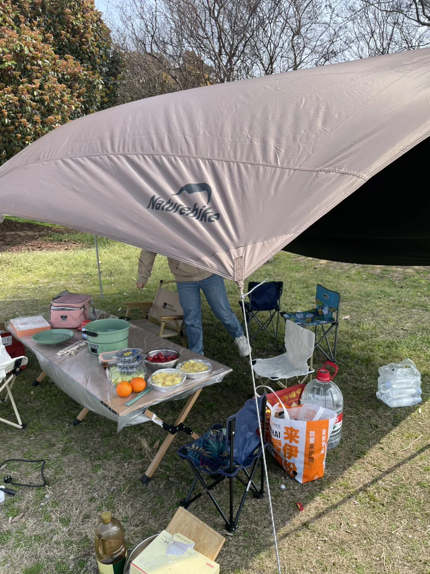 找块平坦草地扎下天幕,铺开桌椅,G6的外放电功能一开启,露营瞬间有了烟火气
