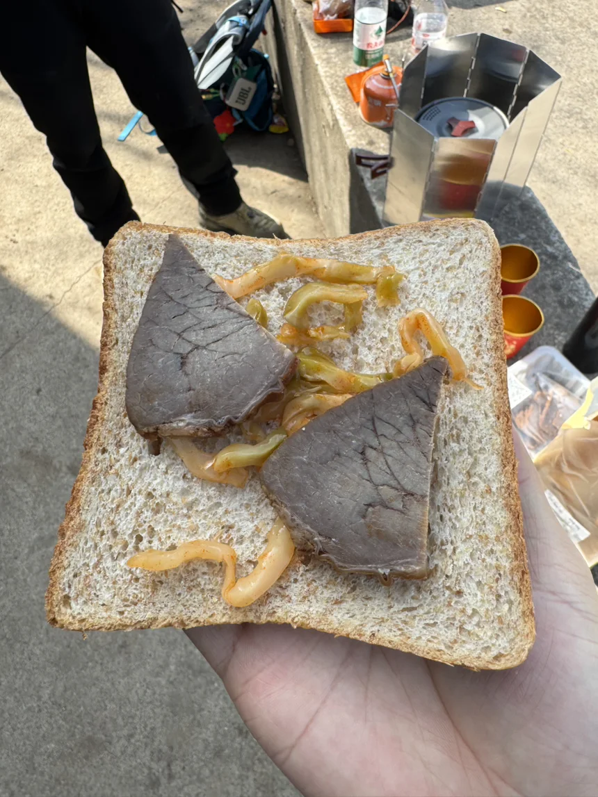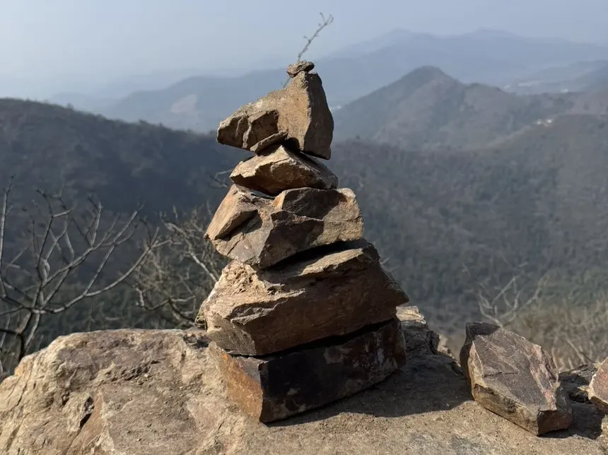 行至正午,我们找了一处阴凉地稍作休整,简单分享随身携带的简餐,快速补足体力,便继续向着山顶前行。一路上相互鼓劲,稳步攀登,终于携手登上高峰。