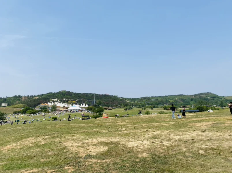 爬到山顶往下望,整个木兰草原的风光尽收眼底。蓝天、青山、远处的营地,风一吹,所有的烦心事都烟消云散了。就这么站在这儿吹会儿风,都觉得值回票价。
