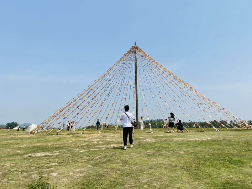 必须来这个网红经幡柱打卡!一根杆子扯出漫天彩条,风一吹飘得肆意又张扬,站在底下拍照,氛围感直接拉满,朋友圈九宫格C位预定了。