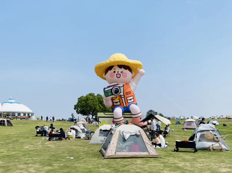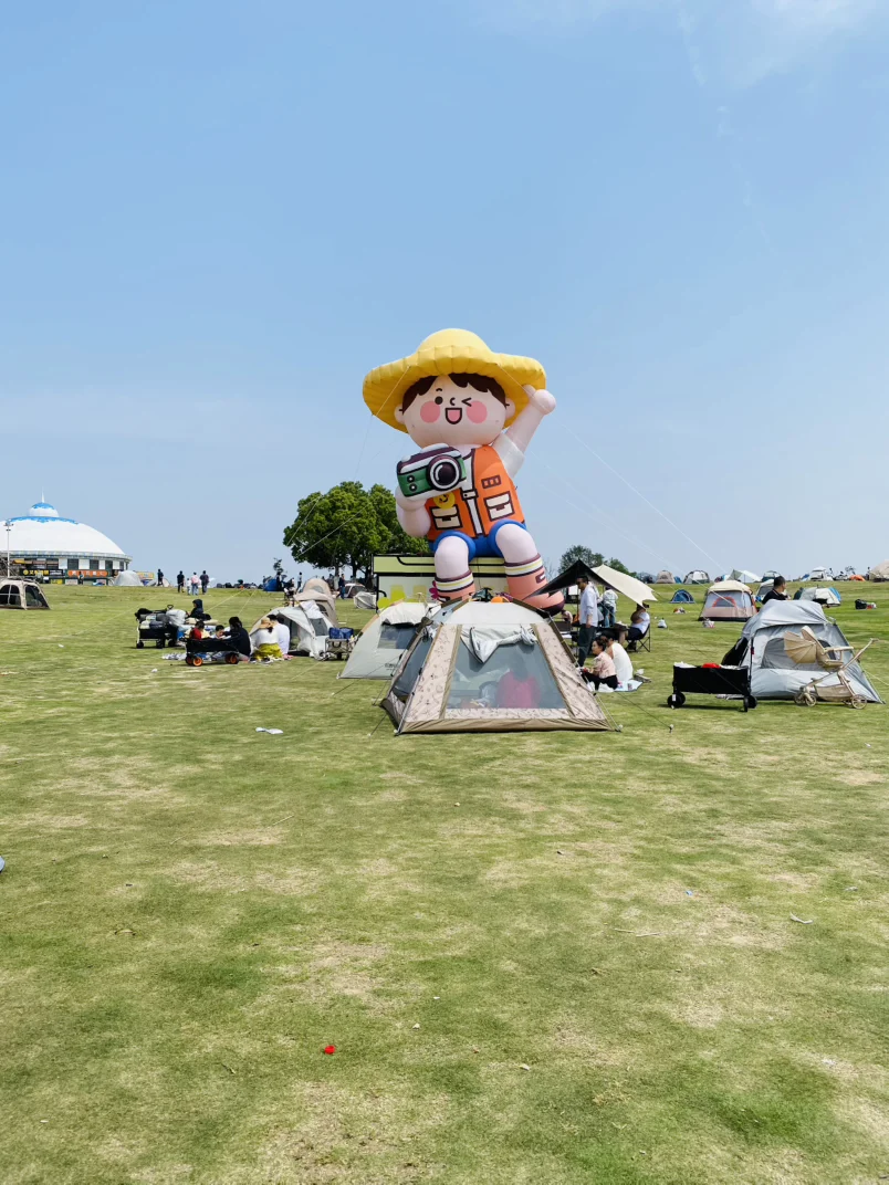 下午就在草坪上彻底躺平。帐篷支起来,零食摆出来,看着那个超大的充气露营玩偶,周围全是搭帐篷、遛娃、野餐的人,热闹又松弛。不用赶时间,不用想工作,就这么慢悠悠晃一下午,舒服到不想走。