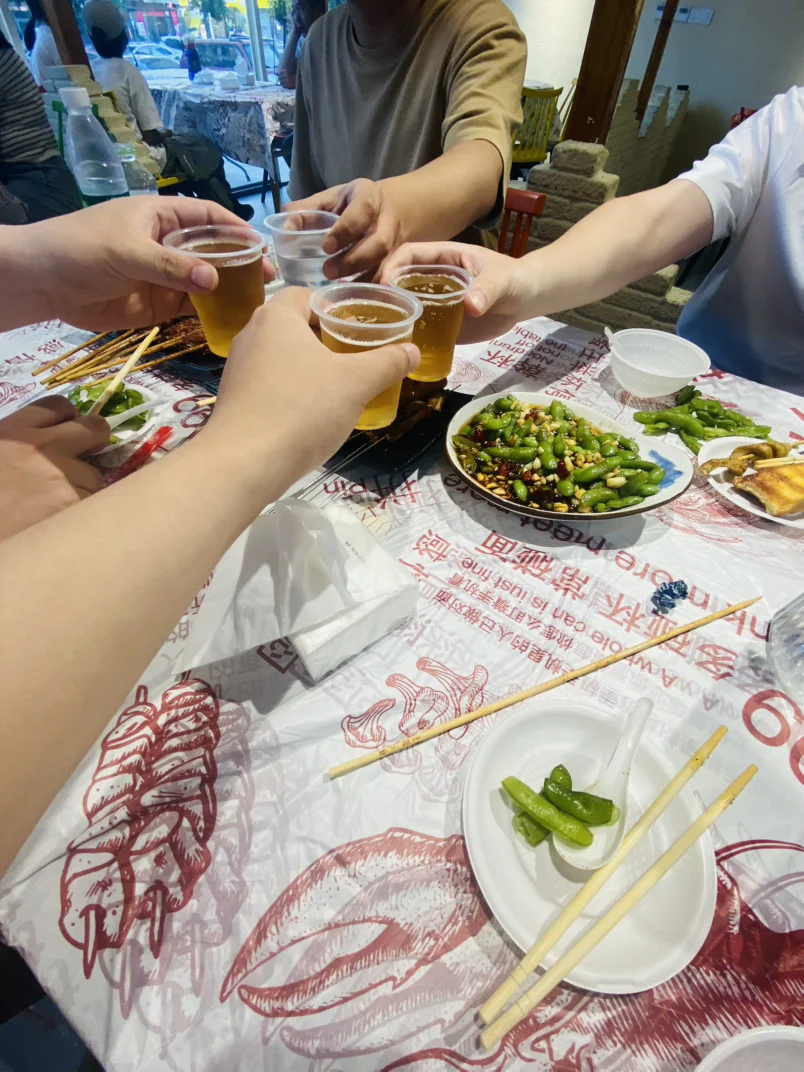 玩到傍晚下山,找个路边烧烤店,冰啤酒、烤串、毛豆一安排,几个人碰杯唠嗑,把一天的快乐都喝进肚子里。