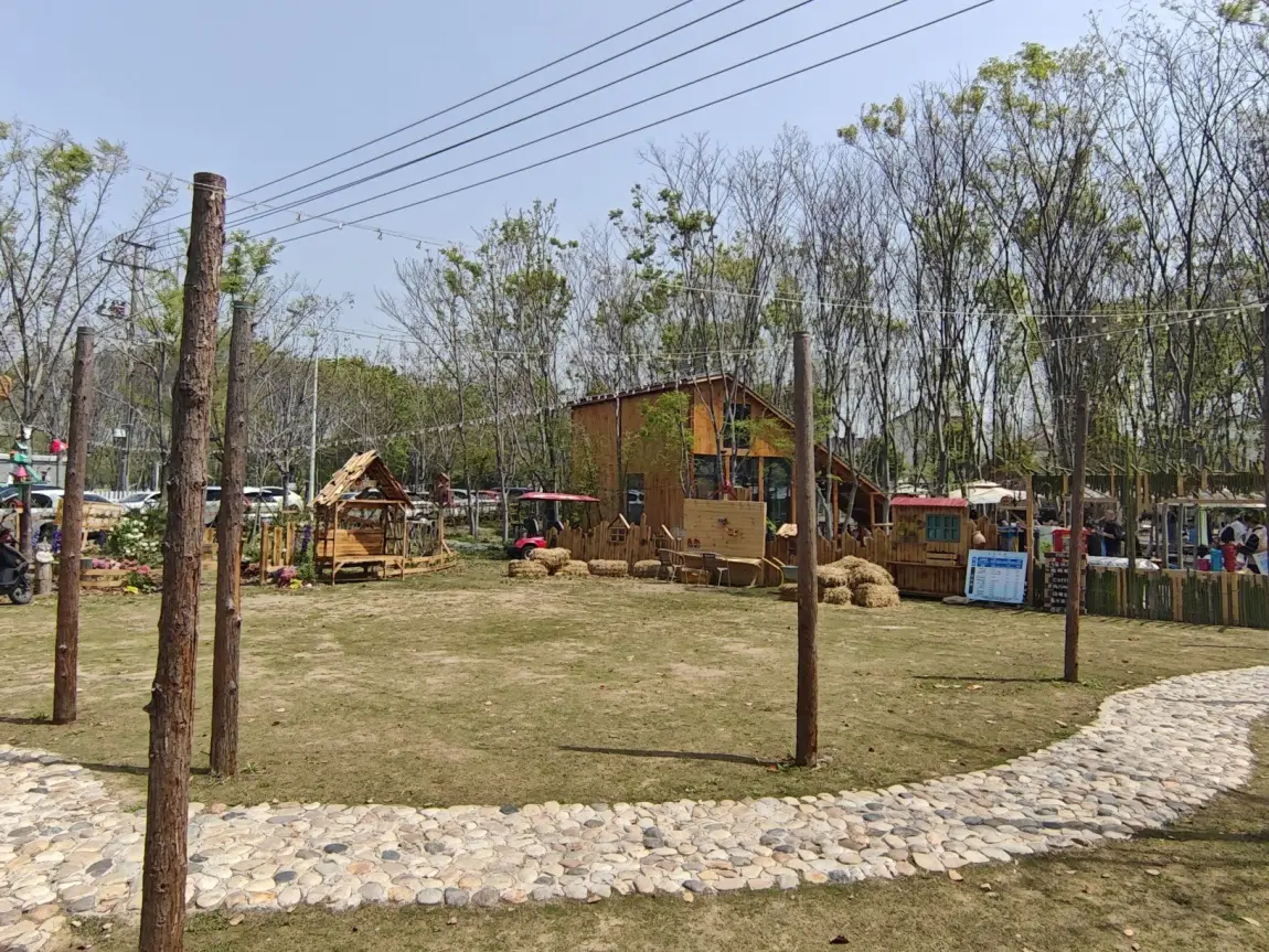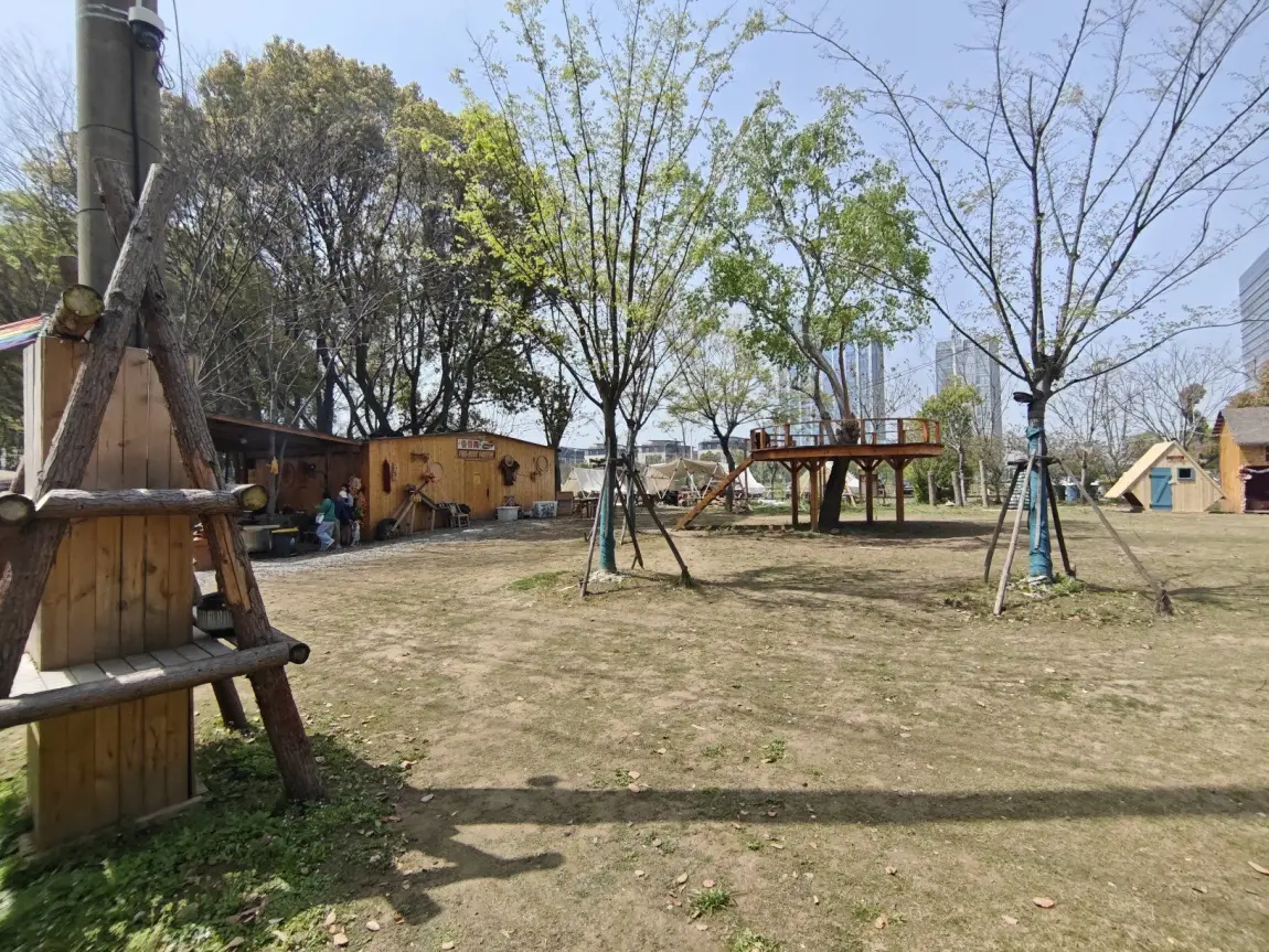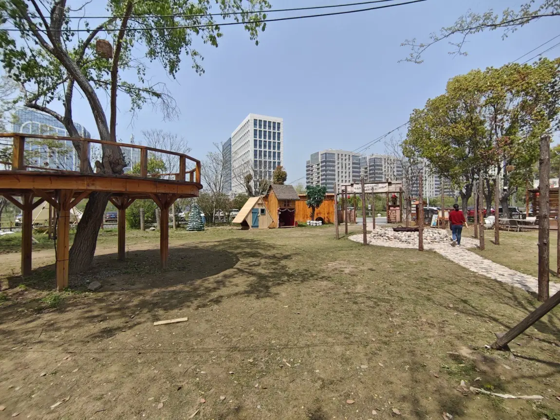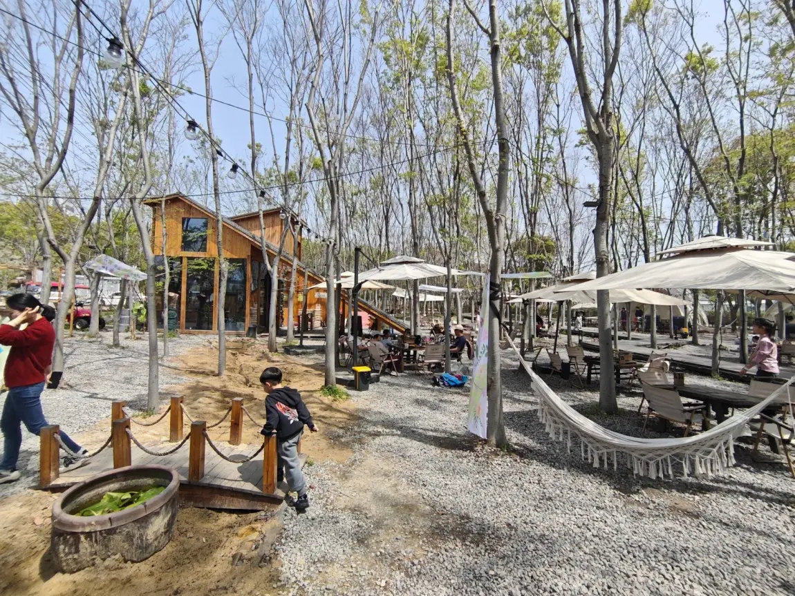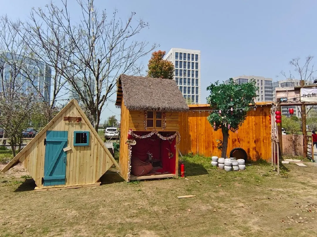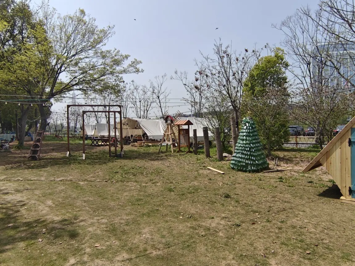 边上是一个亲子营地,有树屋,有啤酒瓶搭成的🌲,有滑梯,有秋千,有土灶,有烧烤,可以抓鱼,可以唱歌,还有音乐节节目。