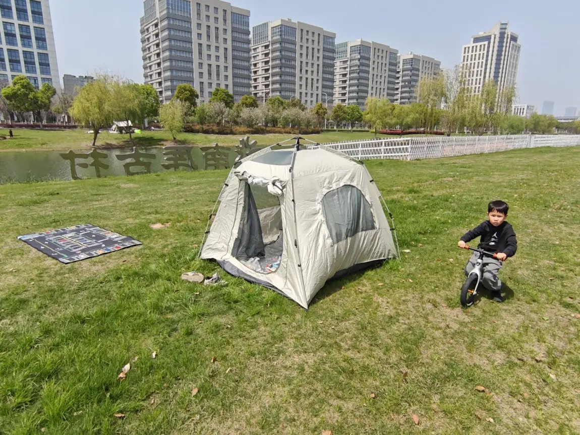 连日的阴雨天气,正好赶上周日的大太阳,来了一趟说走就走的露营一日游。开着佩P7,带着老婆孩子,带上帐篷地垫,小朋友带上了他的平衡车,直奔南厍森趣营地(没选太湖边与公园,车多人多,我还是喜欢人少一点地方)。