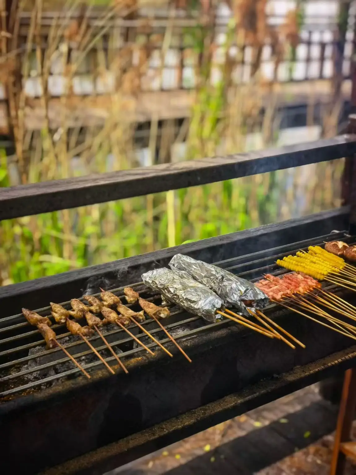 午饭做了野火饭,烤了烧烤,吃饱饱,浓郁烟火气,一个字——香,还有锅巴,娃很喜欢吃。