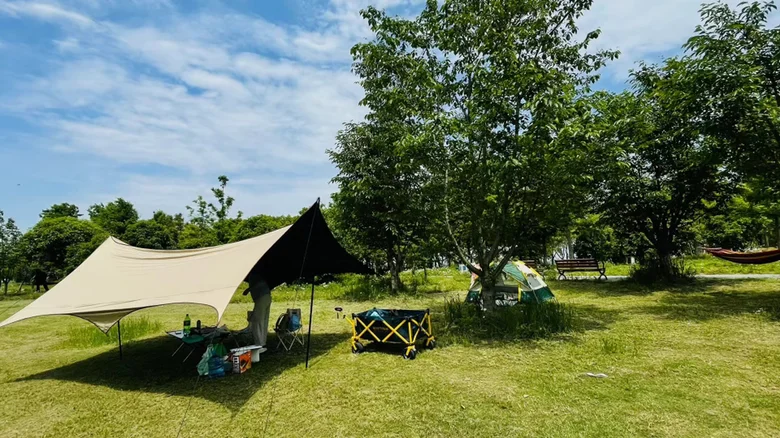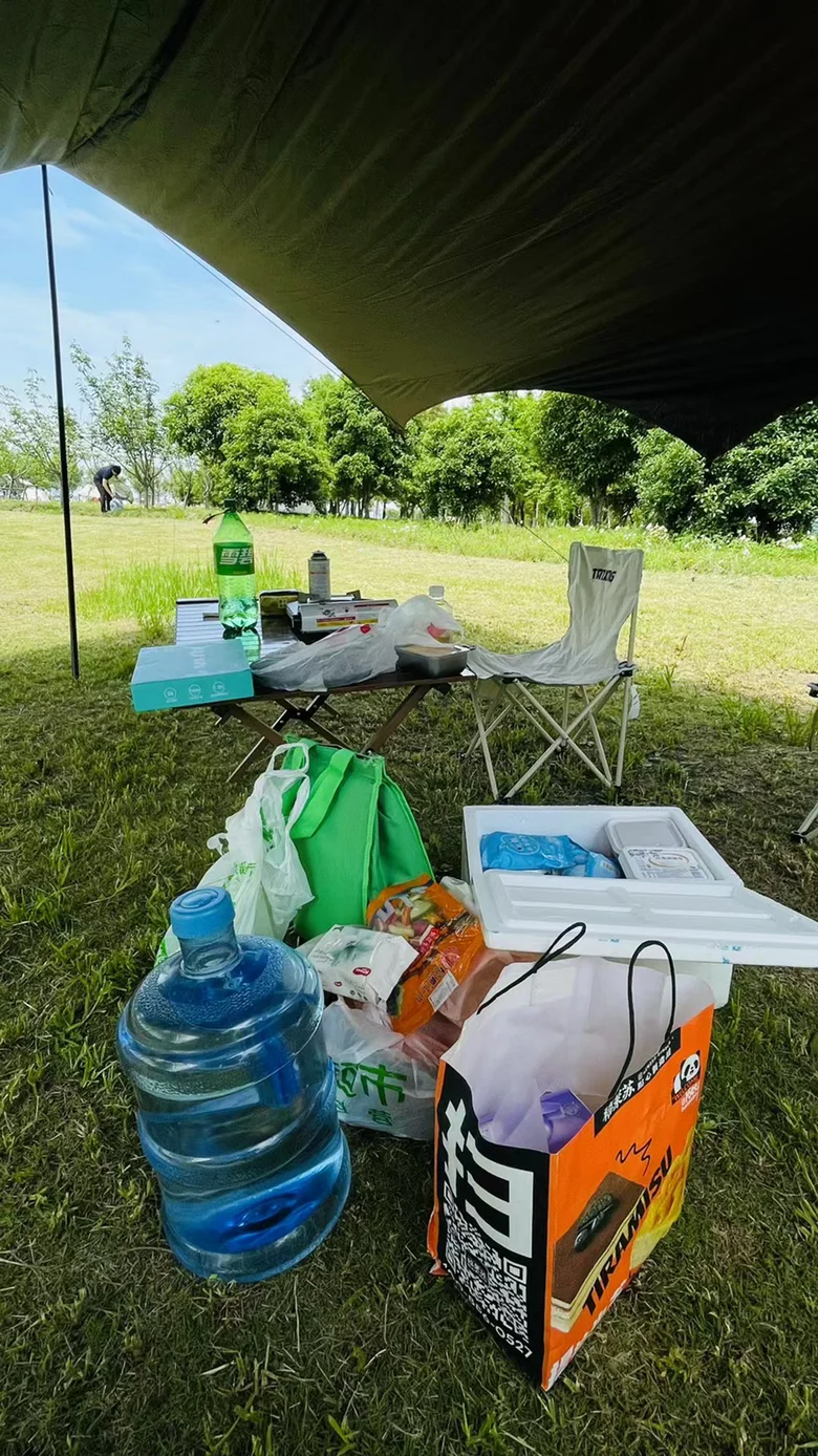装备:天幕帐篷、折叠座椅、露营车、食材、卡式炉、烧烤架等(拥有小鹏G7超大后备箱可以随意带装备)