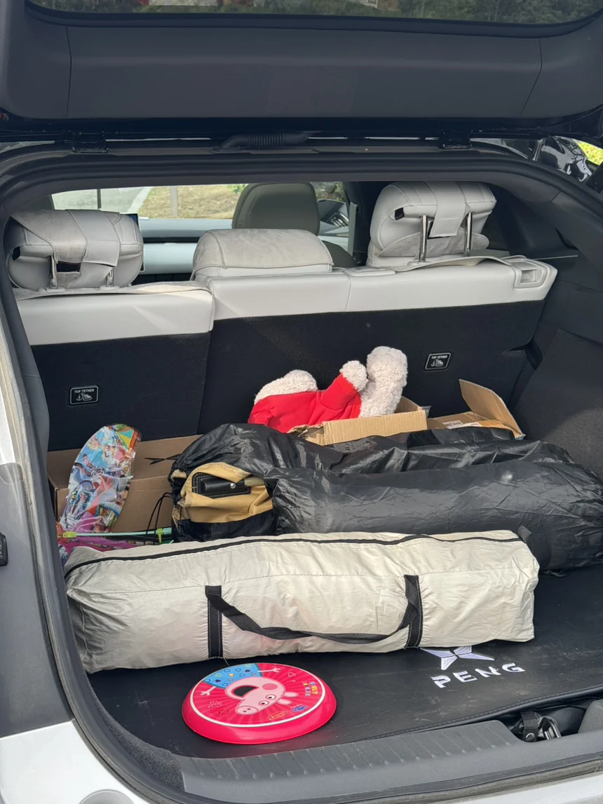 下了快一周的雨,今天终于放晴!立刻开上我的小鹏P7+,后备箱塞得满满当当,帐篷、垫子、零食全安排,就等着带娃去露营吸氧。