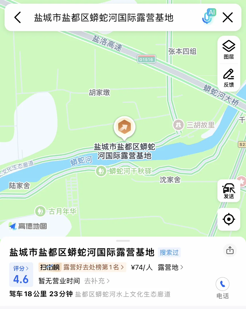 盐城蟒蛇河国际露营基地,坐落在盐都区蟒蛇河水上文化生态廊道的核心区域。它并非一个单一的营地,而是一条沿河展开、串联了“如意港”、“耕读人家”、“千秋驿”等多个特色片区的沉浸式露营走廊。