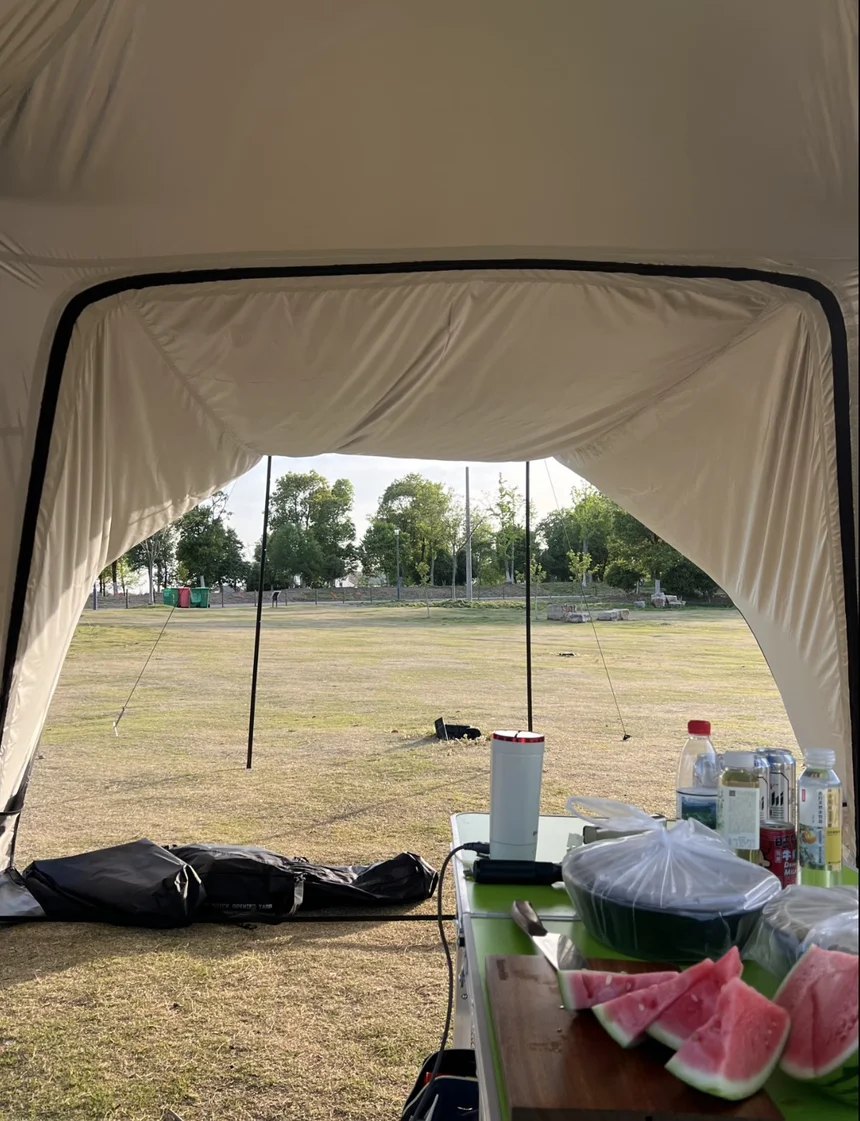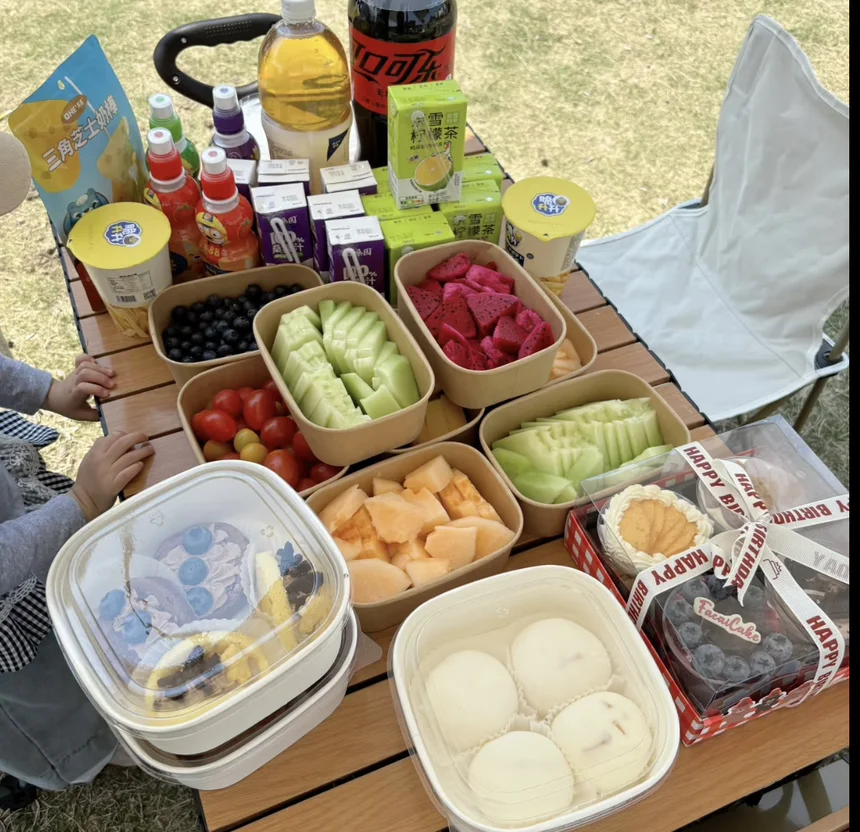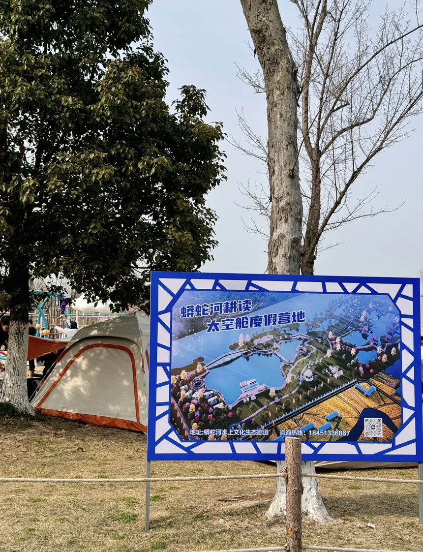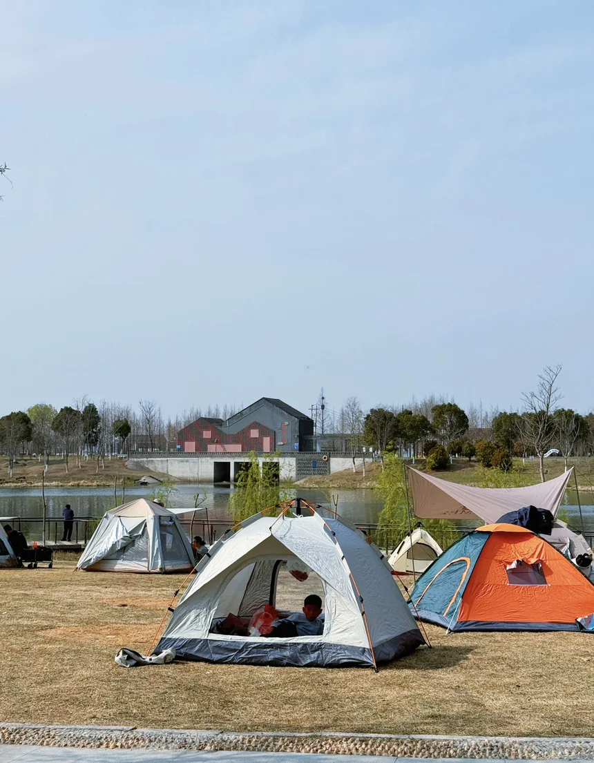 蟒蛇河露营基地的起点——如意港,是一片足够敞亮的开阔绿地。这里没有都市的喧嚣,你可以肆无忌惮地奔跑、放风筝,让紧绷的“班味”随风消散。支起一张小桌,摆上茶壶,当春风拂过炭火,烤红薯和橘子的香气便弥漫开来,这就是最真实的春日疗愈。