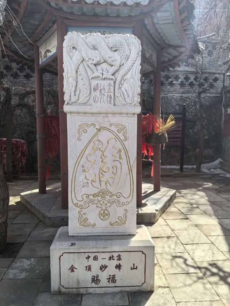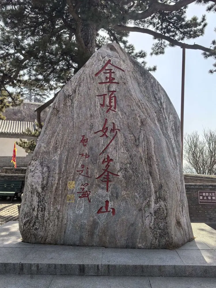 拾级而上,先在“金顶妙峰山”的题字石前打卡,再到赐福碑前沾沾福气,每一步都踩着春日的温柔。登顶金顶,整座山的风光尽收眼底:层峦叠嶂的远山在晴空下舒展,山风拂面,所有的疲惫都烟消云散,只剩满心的开阔与治愈。