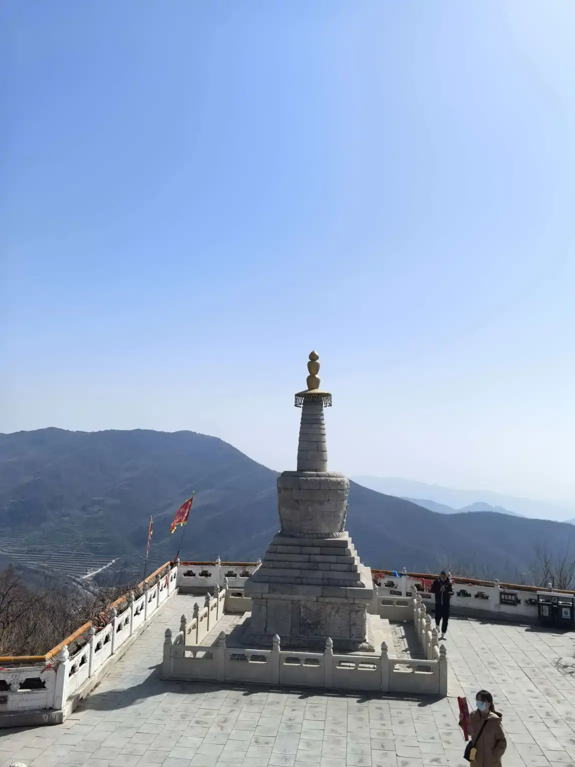 山顶的佛塔在蓝天下更显庄严,红墙黛瓦与春日山景同框,随手一拍就是国风大片,完全不用滤镜!