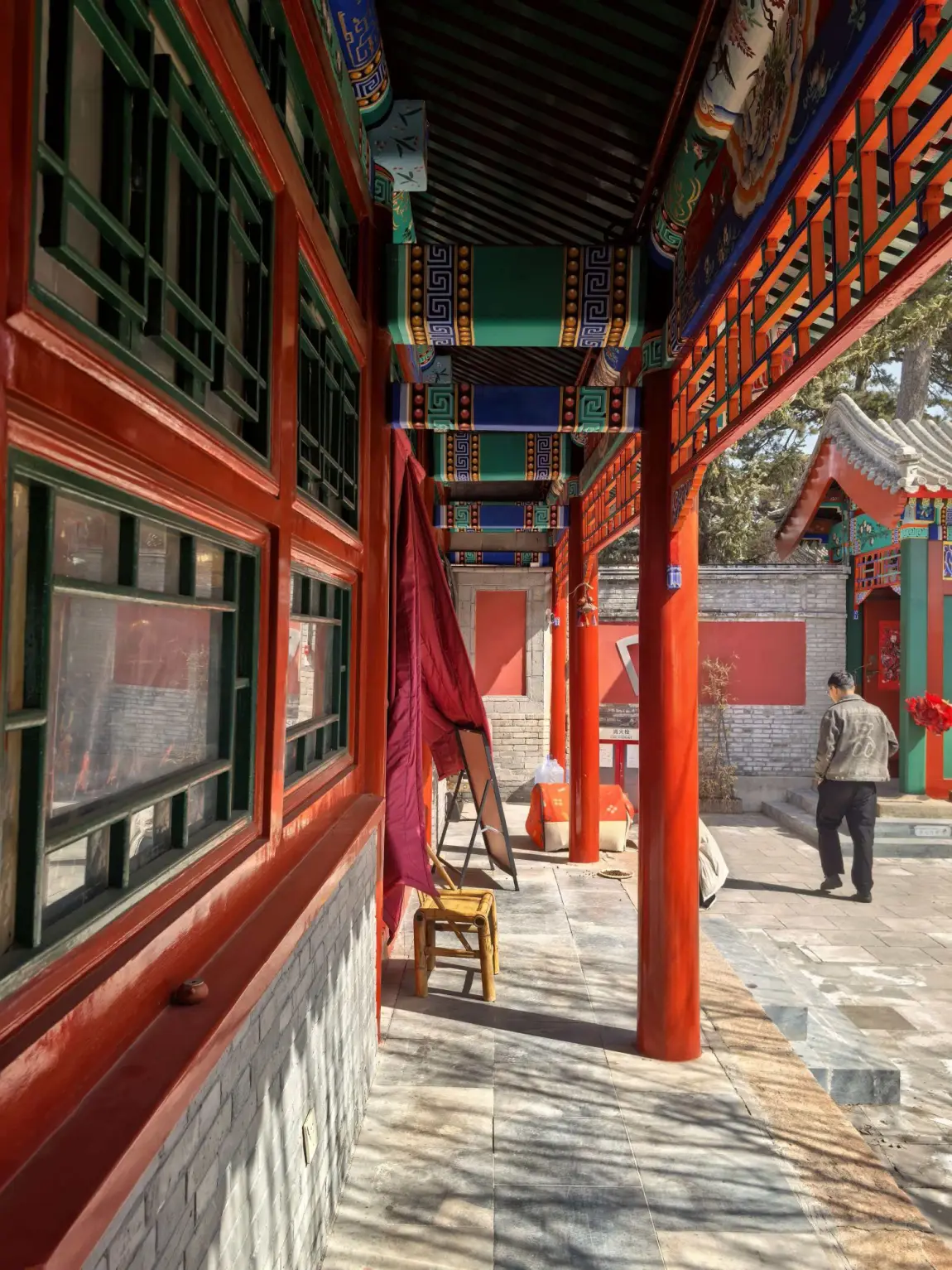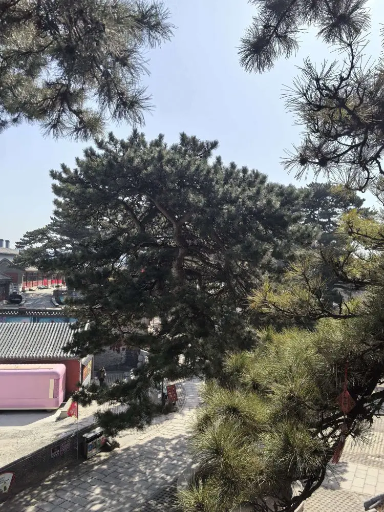 刚进山门,就被朱红的院墙、飞翘的檐角和满院的古松撞了个满怀。210年树龄的二级古油松苍劲挺拔,枝桠间漏下春日的暖阳,光影落在青石板路上,氛围感直接拉满📸。