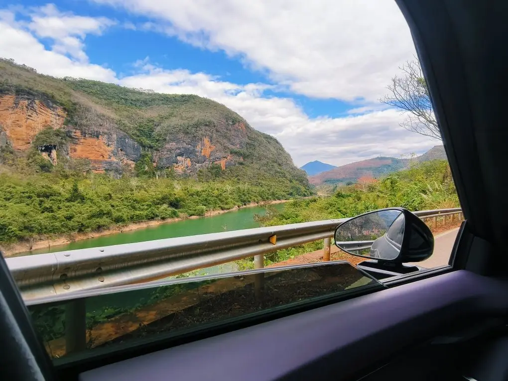 一边是层峦叠嶂的红岩青山,碧绿江水绕着山壁流淌,车窗一开,满是山野的风;