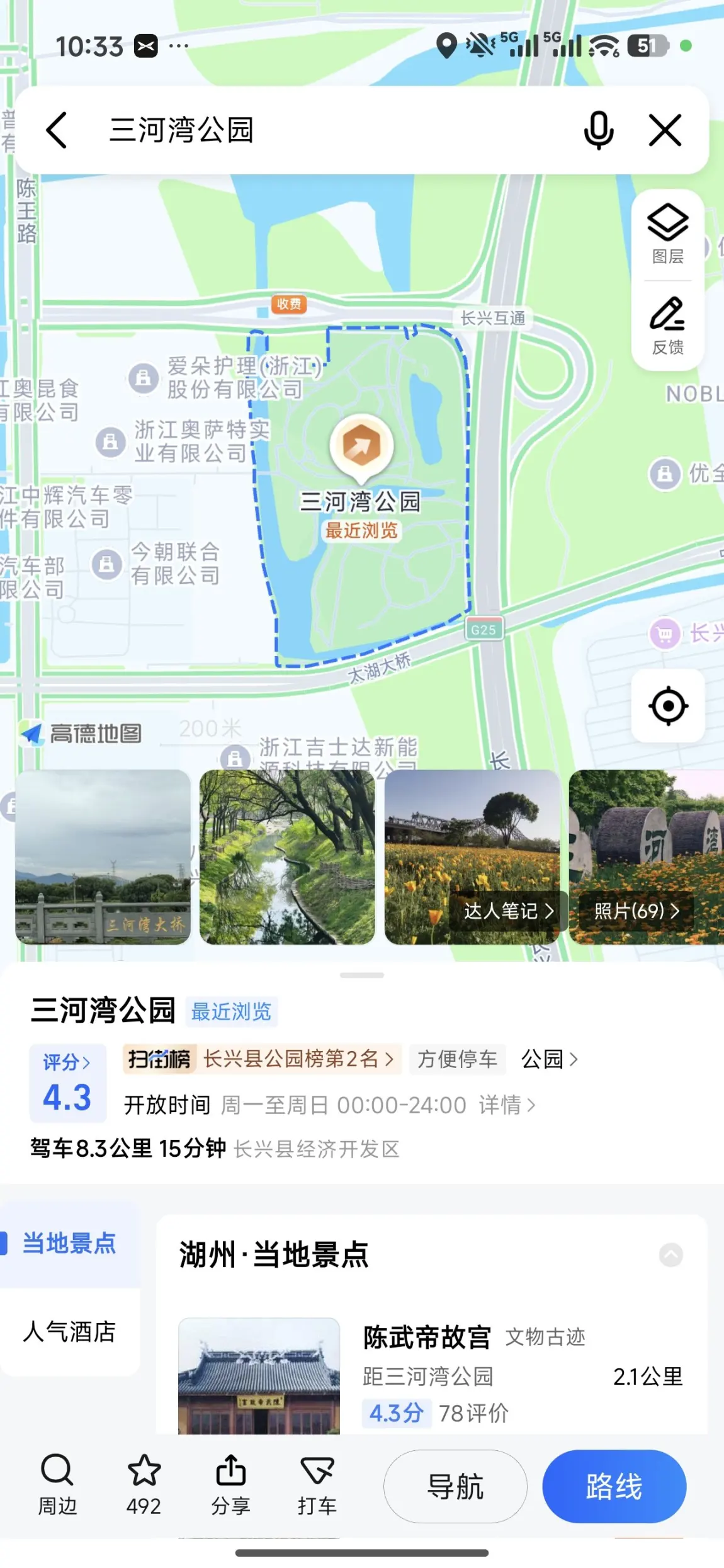 生活忙起来就总想着往外跑,女儿经常嚷嚷着要去露营,正好趁周末,开上P7+直接带女儿和柯基去了长兴三河湾公园,一场很随性的短途放松~从家里出发一共8.2公里,15分钟就能到了。一路上绿意盎然,一副春天的景象。