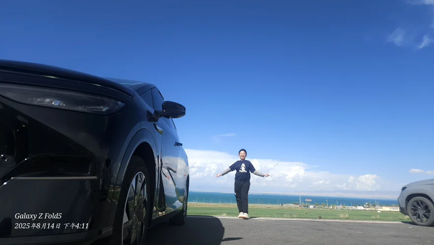 开着小鹏X9奔赴周边,车身与澄澈蓝天同框,车景相映,随手拍都是氛围感大片。
