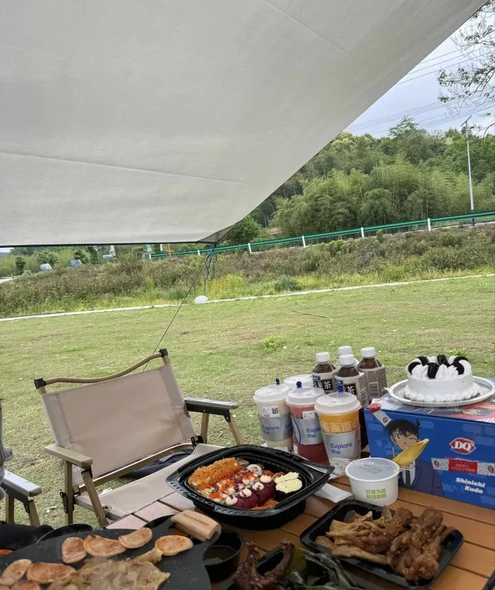 3. 小鹏天幕:一大家子露营,天幕绝对是刚需中的刚需!小鹏这款天幕尺寸足够大,能轻松遮住整张四方桌和几张月亮椅,不管是烈日暴晒还是偶尔飘雨,都能为我们撑起一片阴凉。材质厚实,防晒效果很好,坐在天幕下,吹着山间的风,和家人朋友吃吃喝喝、聊聊家常,这份松弛感,就是露营最治愈的样子。