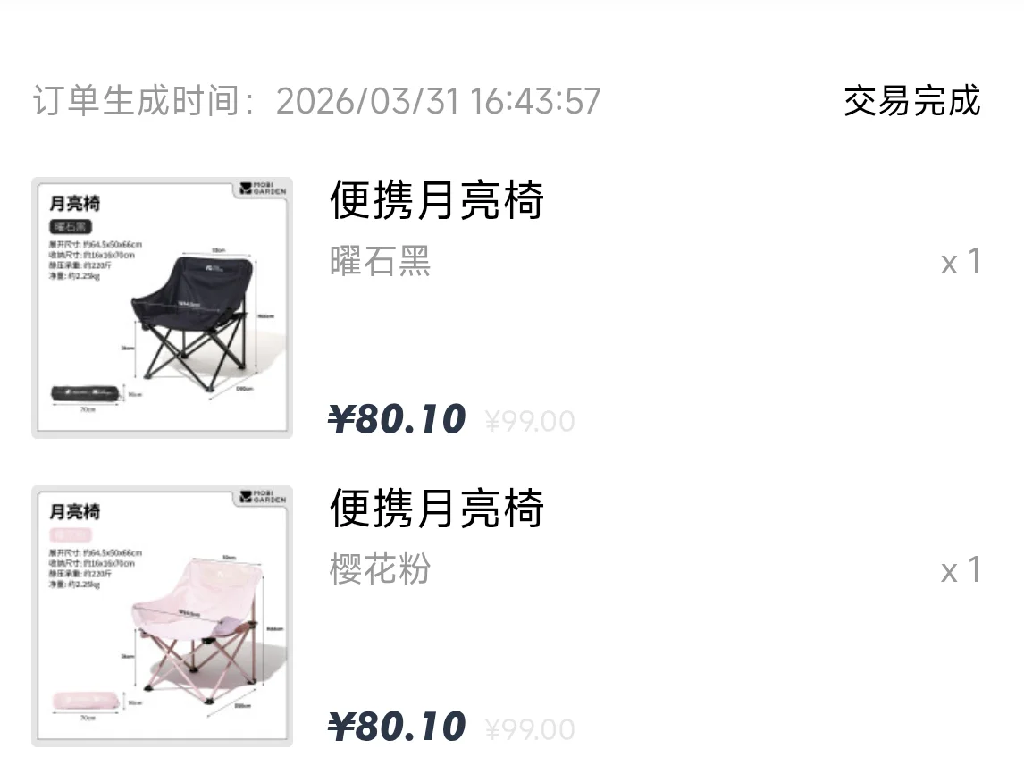 1. 牧高笛月亮椅:这绝对是我心中的露营神器top1!在小鹏商城看到价格时直接惊到,比外面门店和其他平台都便宜,性价比直接拉满,果断怒买4张,全家每人一张,谁也不抢。牧高笛的品质不用多说,椅面宽敞舒适,靠背贴合人体工学,久坐也不会累,不管是坐在上面看风景、吃零食,还是小憩片刻,都超级惬意,折叠起来也不占地方,装车毫不费力,露营氛围感直接拉满。