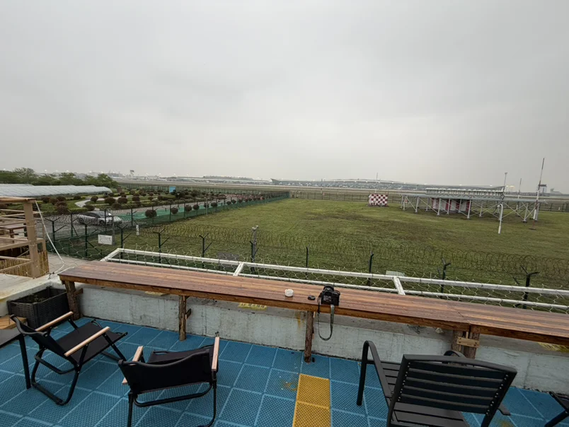 一路开着小车往郊外走,风从车窗吹进来,瞬间把日常的疲惫都吹散了。找到这家藏在机场旁的咖啡店,门口视野超开阔,刚好是飞机起飞的绝佳视角,停好车就开始期待啦。