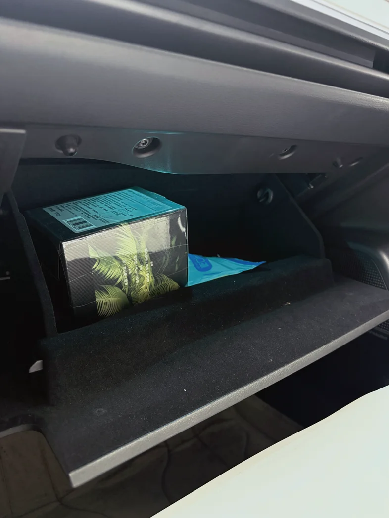 ⭕手套箱:常备口罩等日常高频用品,口罩单独放在小收纳袋中,避免散落污染。这些物品能轻松应对日常出行中的各种小需求,比如车内灰尘需擦拭、突发感冒需佩戴口罩,无需翻找,随手就能取用,兼顾便捷性与实用性。