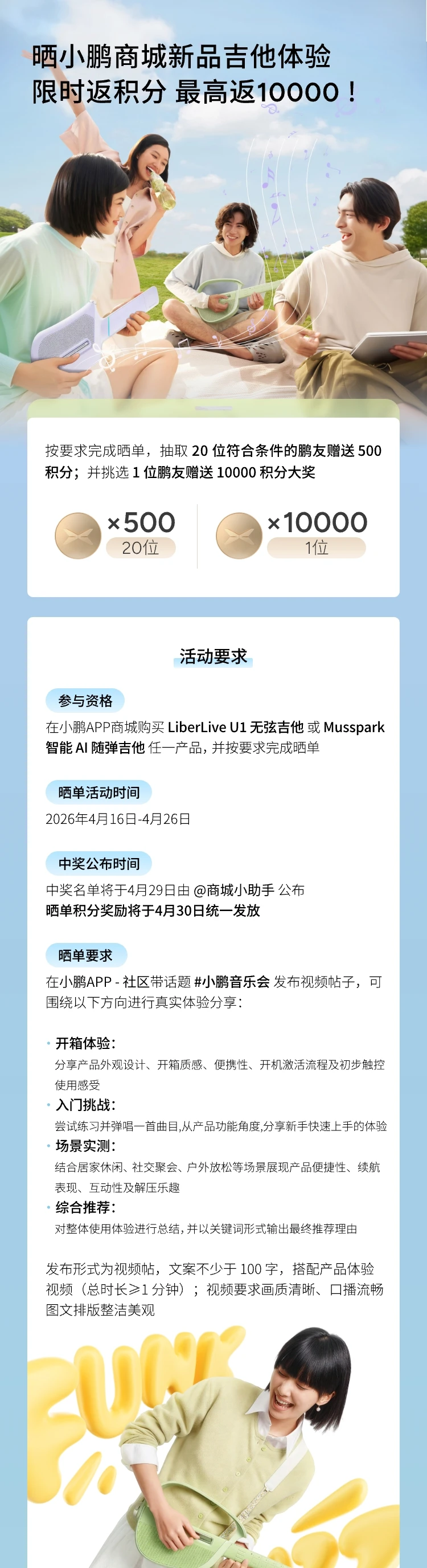 晒小鹏商城新品吉他体验,限时返积分 最高返10000!