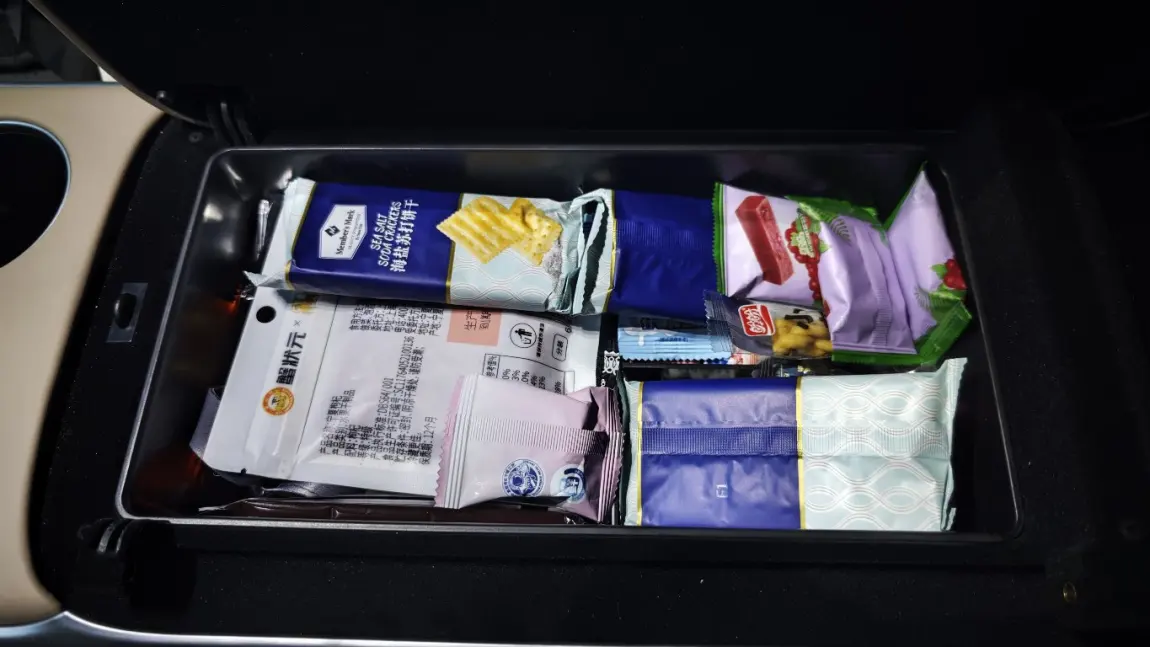 扶手箱啥都不装,专门囤满爱吃的小零食!