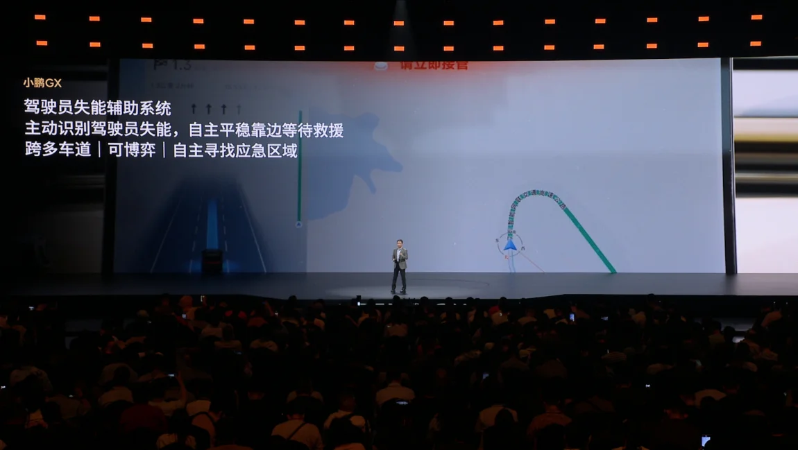 小鹏GX还配备驾驶员状态监测与辅助系统,不仅能识别驾驶员异常状态,自动平稳靠边停车等待救援,还能自主选择应急停车区域,避免二次事故。