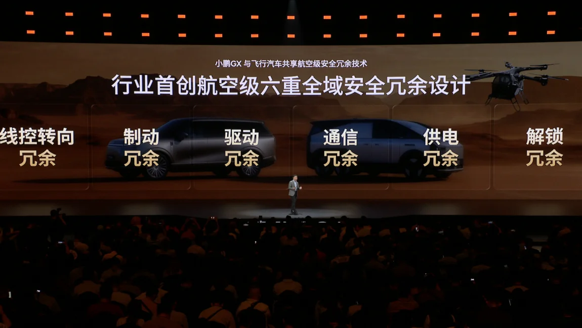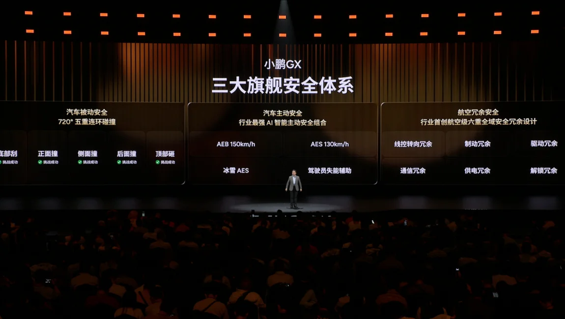 面向物理AI时代,小鹏GX行业首创航空级六重全域安全冗余,将安全标准提升至民航级别: