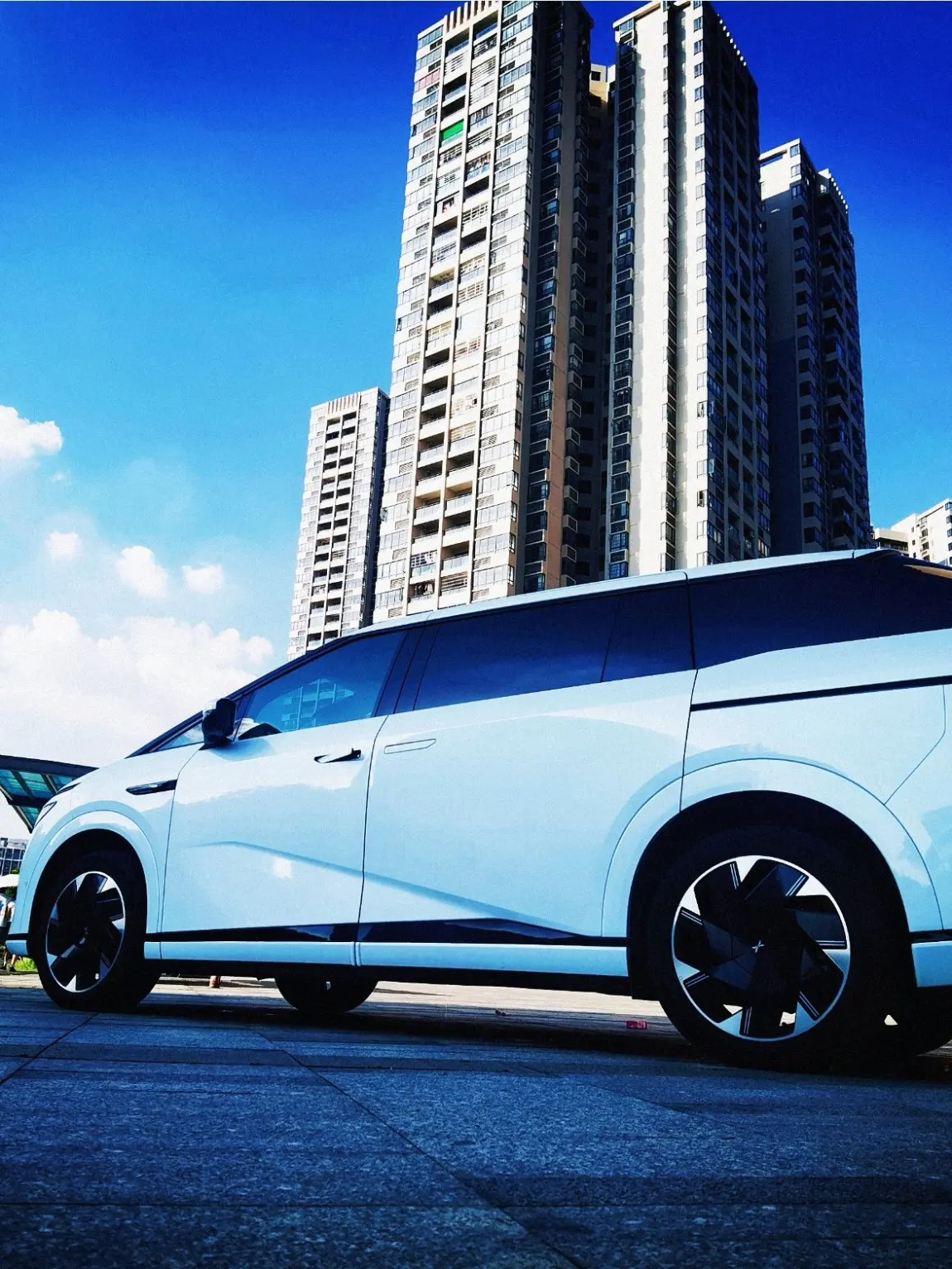 饭后,我抬头看见X9静静停在楼下,白色车身在晨光里很干净。拍了一张车与楼的同框。一边是生活的居所,一边是出行的伙伴,现代科技和温暖日常,刚刚好。