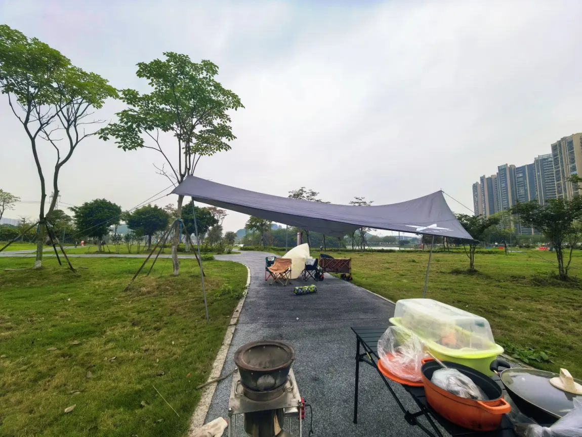 星湖很美,柳树刚冒新芽,湖边已经有很多年轻人在搭帐篷天幕。我们赶紧选好位置开始搭建。公园不让开车进来,X9的外放电用不上,没关系,我自带炉子,带着儿子在附近捡了些干树枝树叶,成功生火!烧柴火饭的香气飘出来,路过的都回头看。涮着牛羊肉,烤着红薯和香蕉,儿子说“比家里好吃一百倍”。