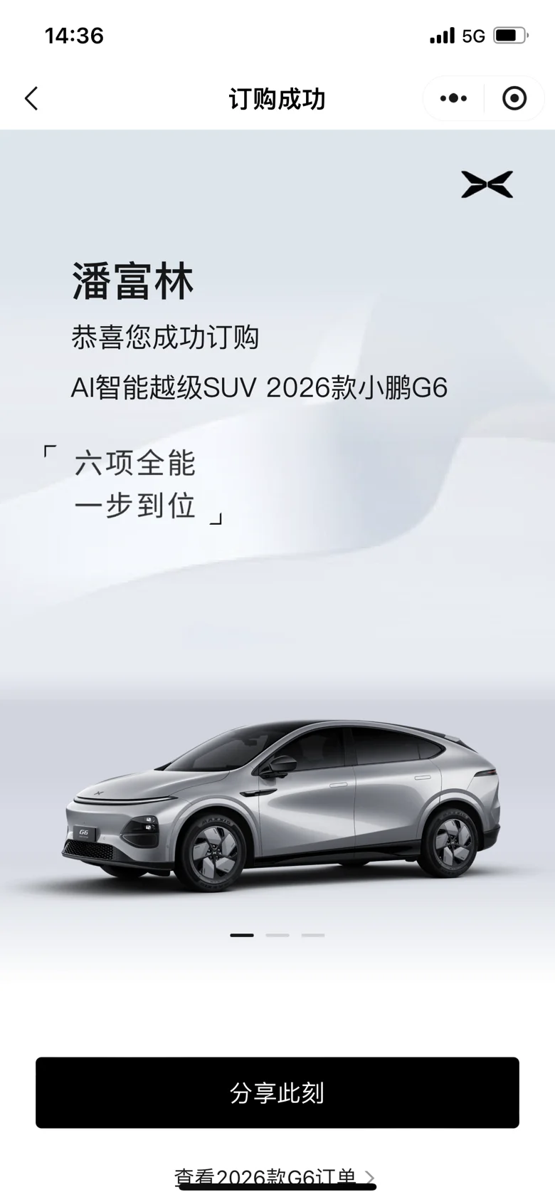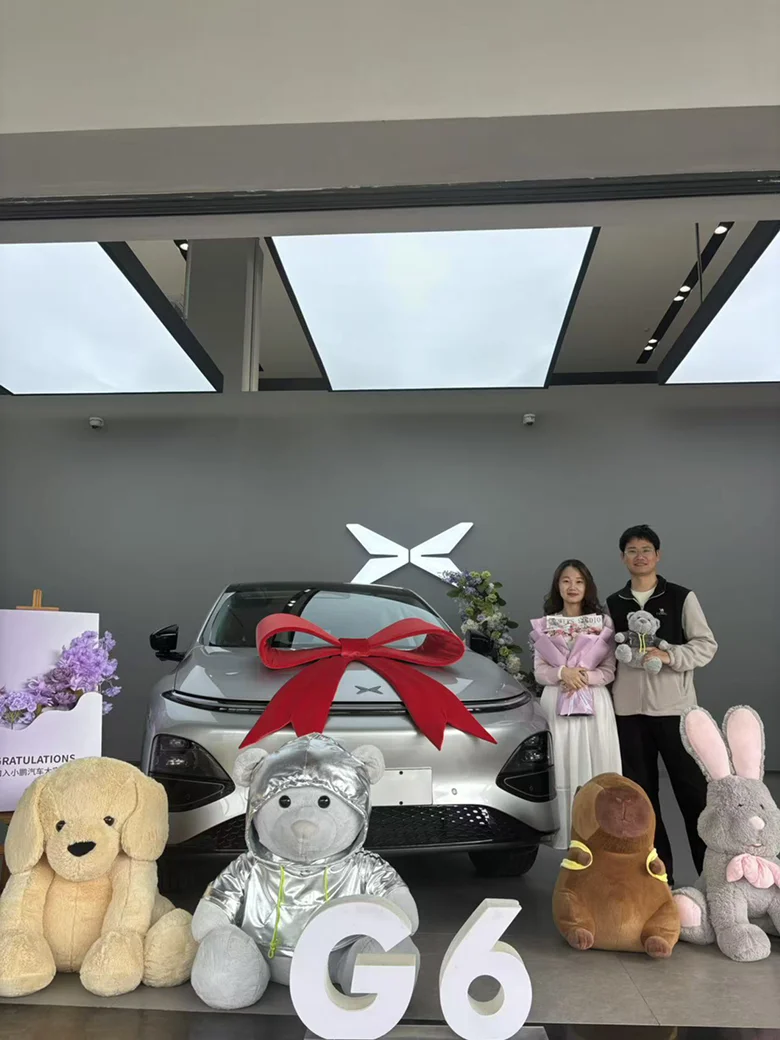 #我的提车作业# @社区活动小姐姐 😘😘😘从去年开始就一直关注小鹏g6,本来想着有一点里程焦虑的,但是看到有800v的快充,已经打消我的顾虑了,还有就是颜值这方面,已经深深的打动着我了,冲今年3月初观望,一直到3月中旬,果断下定,锁单,到最后提车,一周的时间全部搞定,不亏是小鹏,速度效率都杠杠的,赶上了,拿到车的第一时间就打开了智驾,这也是我冲小鹏的其中原因,非常的智能,小p的应答速度也是非常的棒,最后还要感谢交付中心的工作人员,非常耐心的解释车辆的功能,非常愉快的购车体验