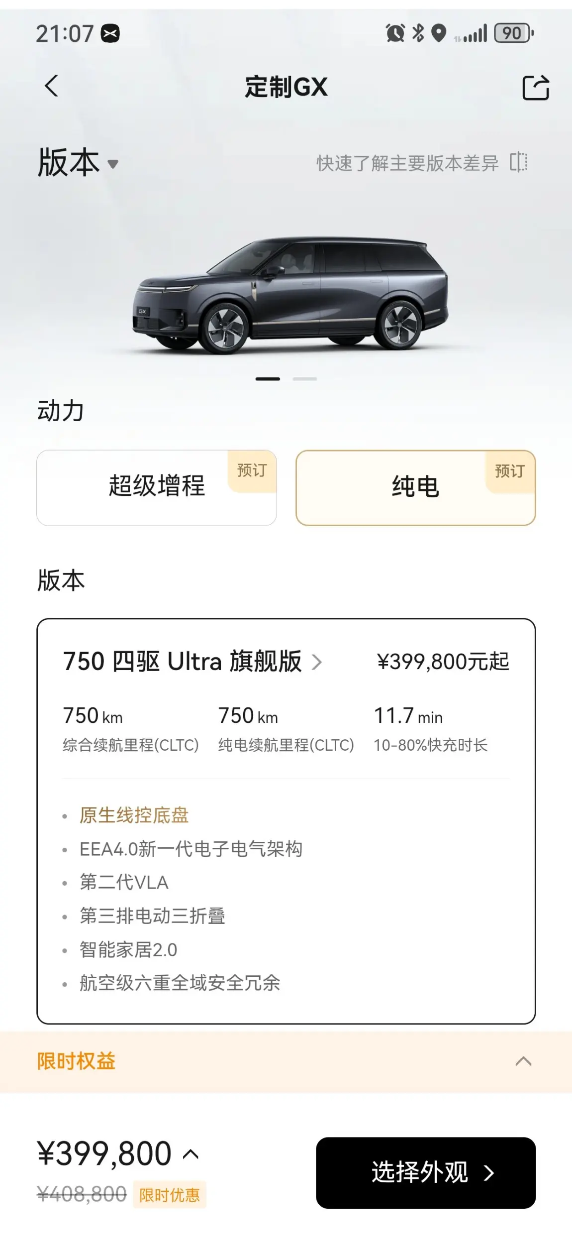 动力和补能也没短板!提供纯电和增程双版本,纯电版基于800V高压平台,最高续航可达750km,15分钟就能补能500km,彻底告别里程焦虑。增程版综合续航超1200km,长途出行也能从容不迫。