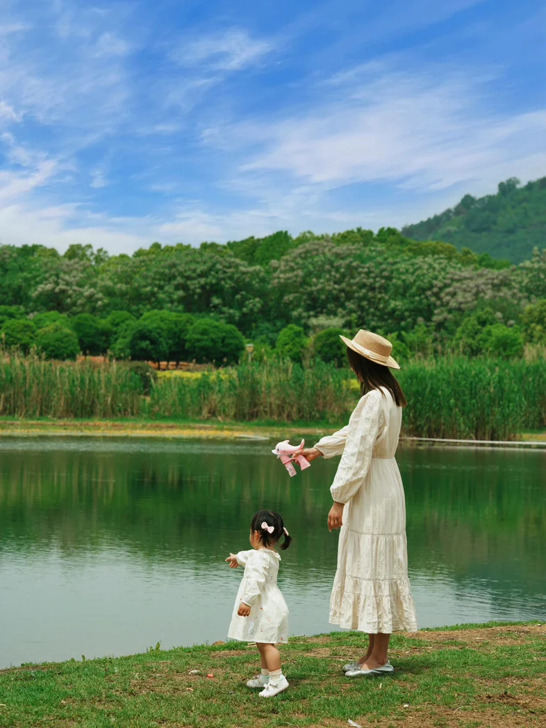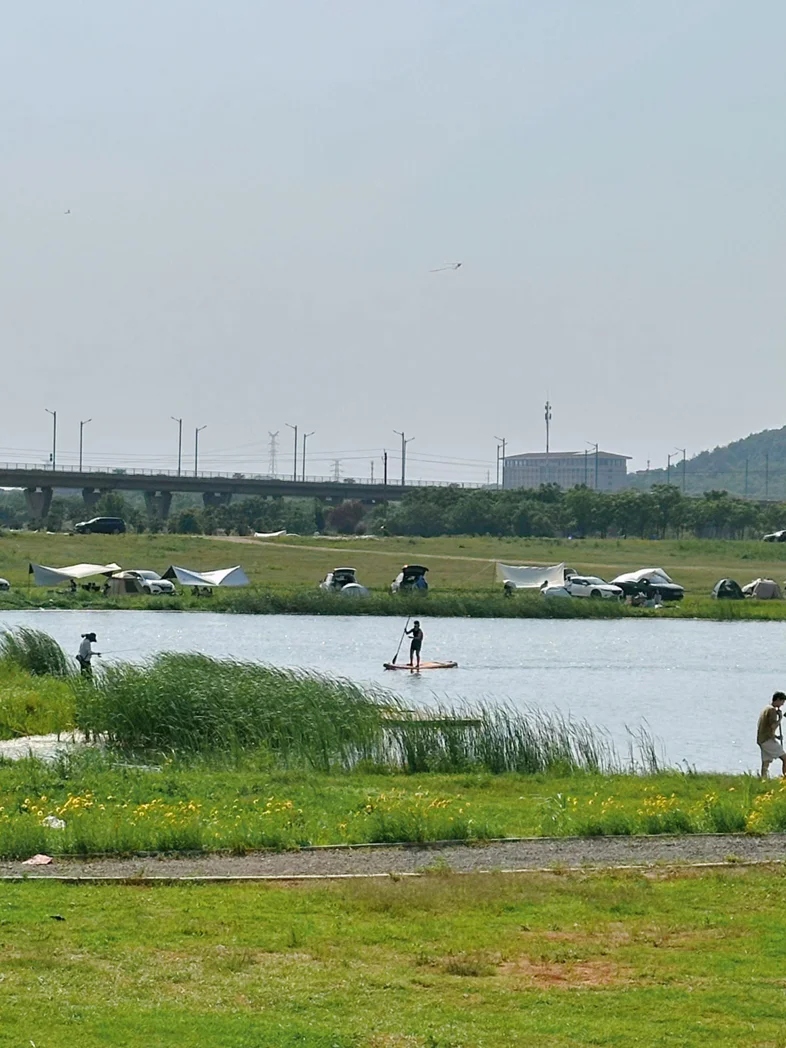 带娃出来玩也完全不操心,草地平整开阔,小朋友跑跳安全,湖边还有人钓鱼、玩桨板,热闹又不嘈杂。不用刻意找网红打卡点,这样自然又接地气的户外时光,才最让人安心。