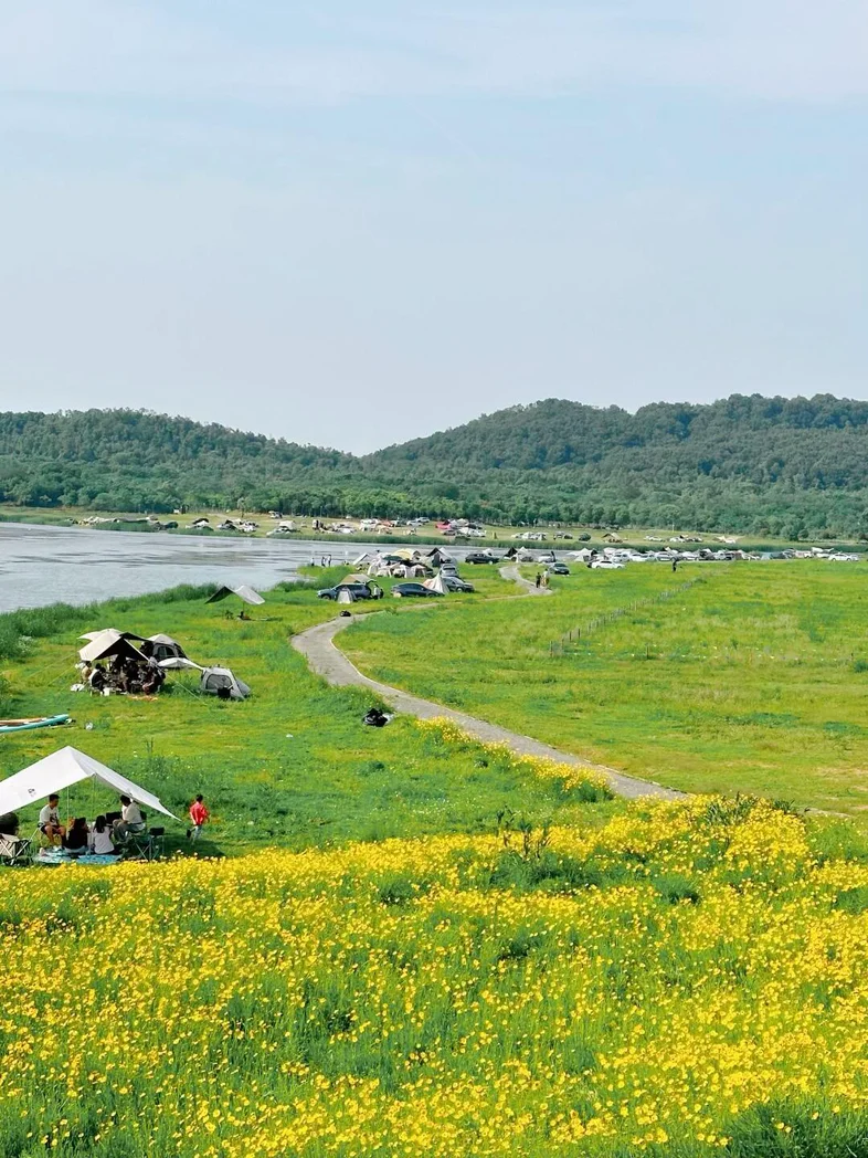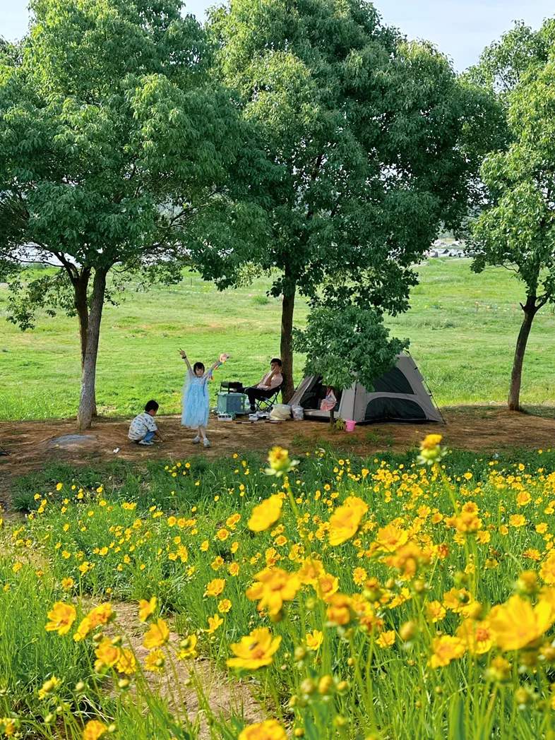 #户外出行日记# 最近总念叨要带家人出门透透气,今天就打卡了家附近超宝藏的露营地——武汉经济技术开发区沿河垸泵站周边。不用跑远路,开着我的小P半小时就到,这份家门口的惬意真的太香了!