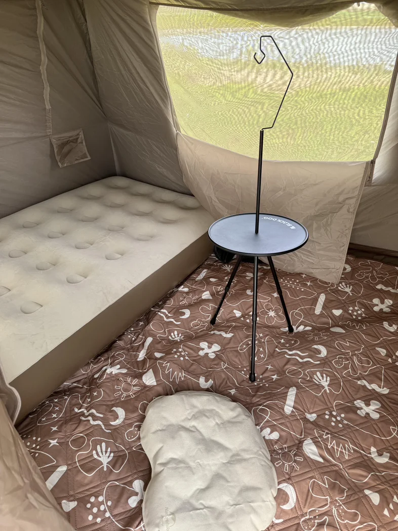 找了棵树荫下的位置支起帐篷,风从湖面吹过来,凉丝丝的,完全没有闷热的感觉,舒服极了。