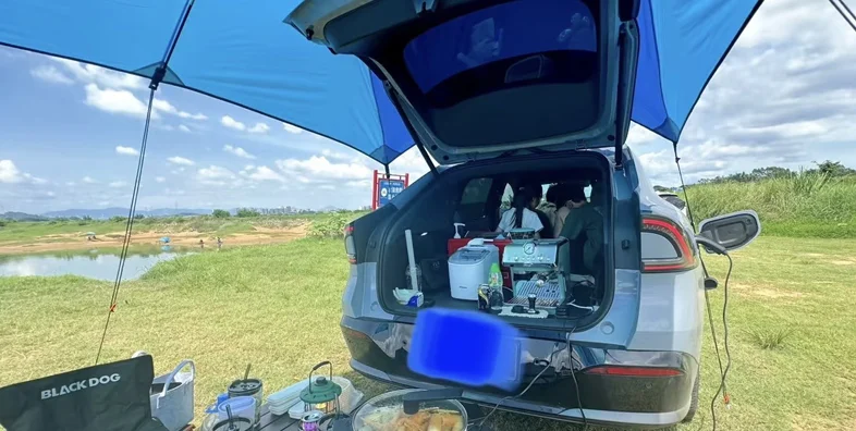 咱们小鹏车主的快乐就是这么简单,把车停好,后备箱一打开,露营装备、零食饮料全拿出来,瞬间搭起专属的小角落。我就坐在帐篷边吹着风,看着湖水和远处的大桥,这一刻的松弛感,真的能治愈一周的疲惫。