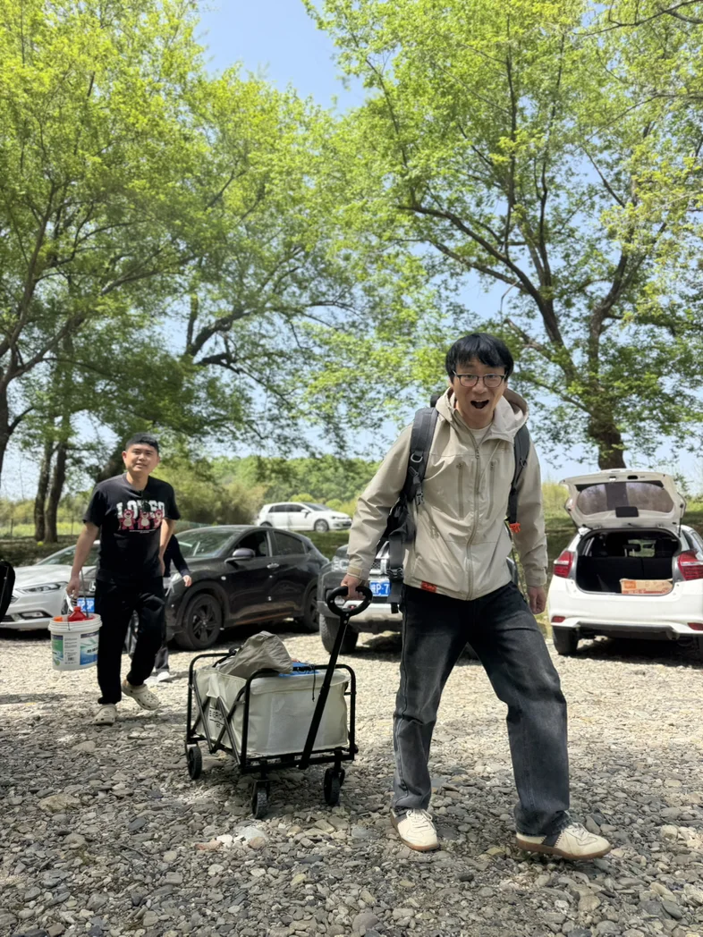 #露营目的地# 阳光穿过新绿的枝叶,在溪畔洒下斑驳的光影,我们带着装备奔赴这场与自然的约定。拉着露营车搬运物资,天幕下的折叠桌摆满西瓜、零食与饮料,望山楂的气泡在瓶中轻舞,酸甜的果香混着青草气息漫开,连风都变得温柔起来。
