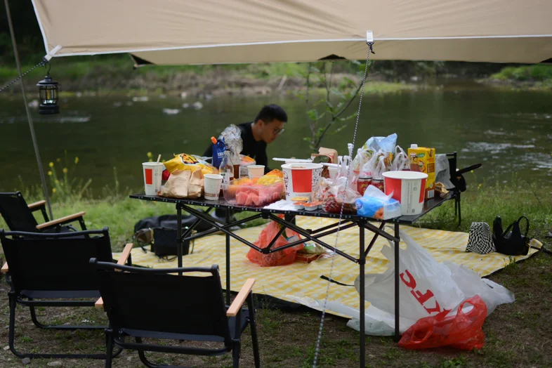 这里的时光仿佛被溪水放慢了流速,没有城市的喧嚣,只有树叶摩挲的沙沙声、流水潺潺的轻响,和偶尔传来的几句闲聊。当暮色渐浓,马灯亮起暖黄的光,我们围坐在一起,分享着食物与故事,把这一天的惬意与松弛,都装进了记忆里。