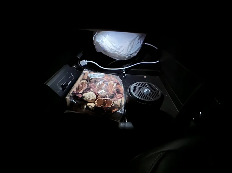 2. 后排的家人随手可及,不用弯腰伸手,坐后排玩手机、吃零食、擦嘴的纸巾,低头就能扔,不用转身、不用够,乘坐体验更舒服。