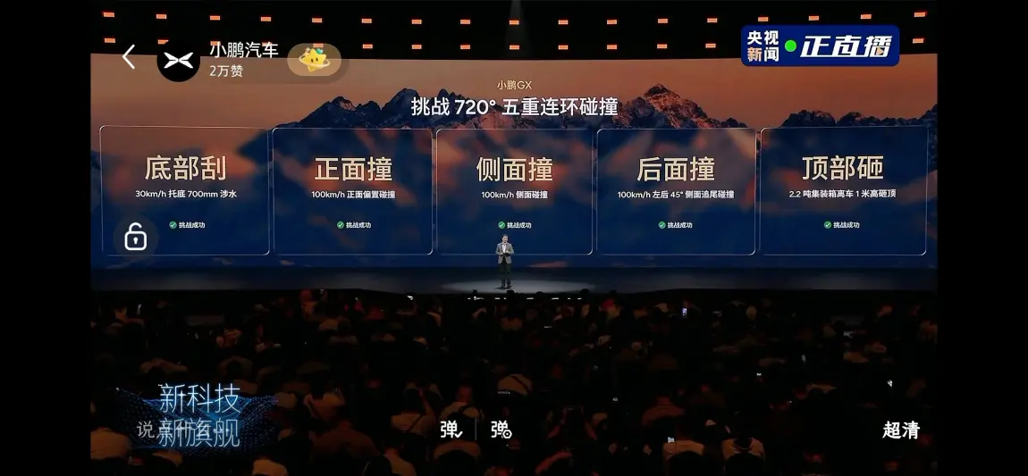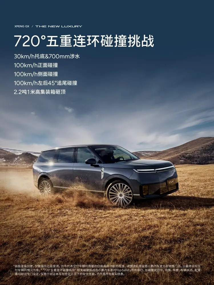 小鹏在安全上从来不会偷工减料,这次GX作为品牌的旗舰车型,我相信它的安全标准只会更高。一台GX同时完成了720度五重连环碰撞测试,你以为大师兄你是真省钱吗?他是对GX太有信心了!高强度钢铝混合车身、全方位的气囊保护,再加上小鹏最新一代的主动安全系统,不管是被动安全还是主动安全,都能给我满满的安全感。以后载着老人孩子出门,也能更放心。