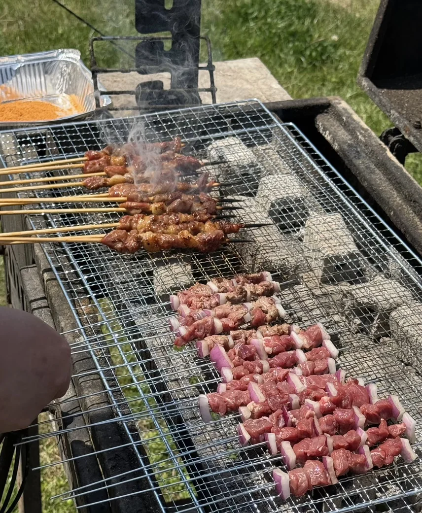 炭火上的肉串滋滋冒油,香气直接飘满整个草坪,这才是周末该有的样子~