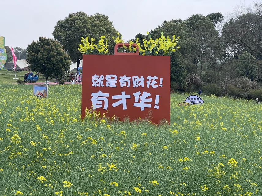 就连油菜花田的打卡牌都充满了巧思,“就是有财花!有才华!”,拍照打卡超有梗。